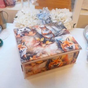 Käsitööna valminud karp / laegas mälestusesemete hoiustamiseks “Metsaloomad”