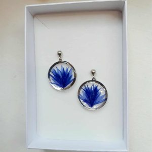 Kõrvarõngad kuivatatud õitest ja epoksiidvaigust – sinine kipslill