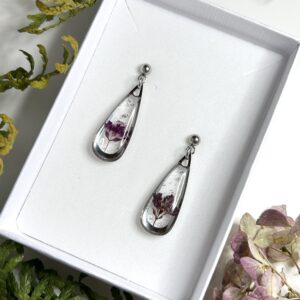 Kõrvarõngad kuivatatud õitest ja epoksiidvaigust – meelespea, eerika, kanarbik
