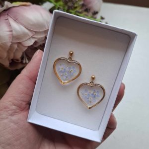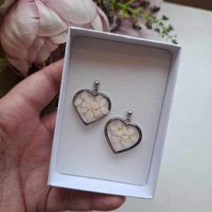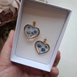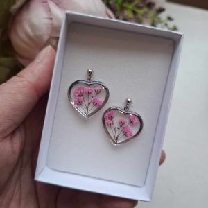 Kõrvarõngad kuivatatud õitest ja epoksiidvaigust “Südamed”- meelespea