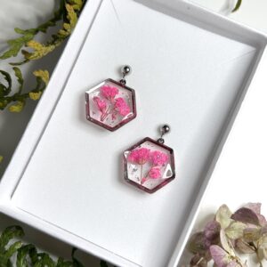 Kõrvarõngad kuivatatud õitest ja epoksiidvaigust – erkroosa kipslill