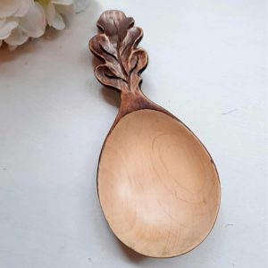 Käsitsi voolitud laiem puidust lusikas “Tammeleht”