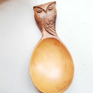 Käsitsi voolitud laiem puidust lusikas “Öökull”