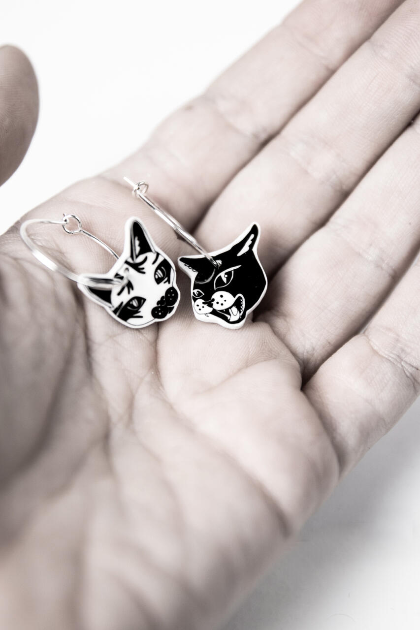 The earrings are handmade – drawn, cut out and baked in the oven.
