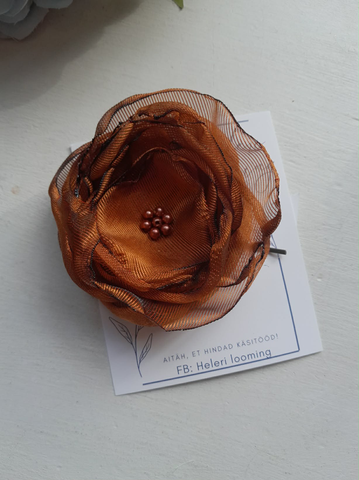 Measurements: diameter of the flower is 8 cm, length of the pin is 9 cm