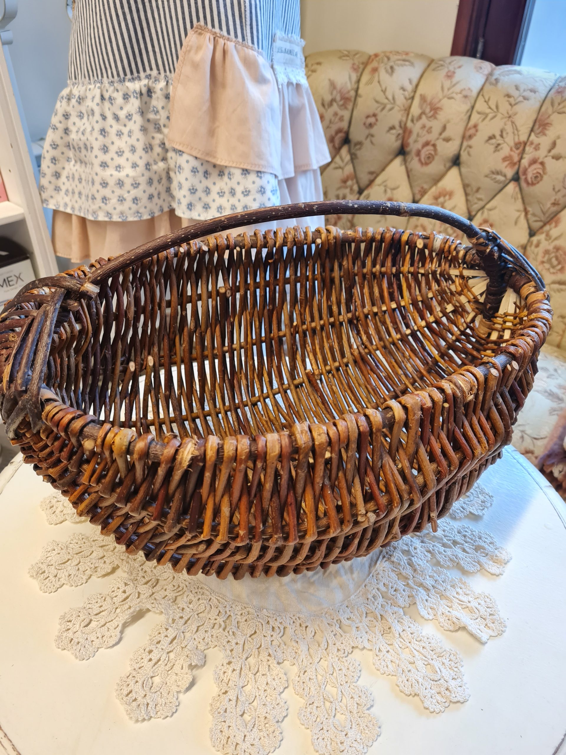 Hand-woven basket with handle Hand-woven basket, suitable for going to the market, mushroom picking or as a home decor element
