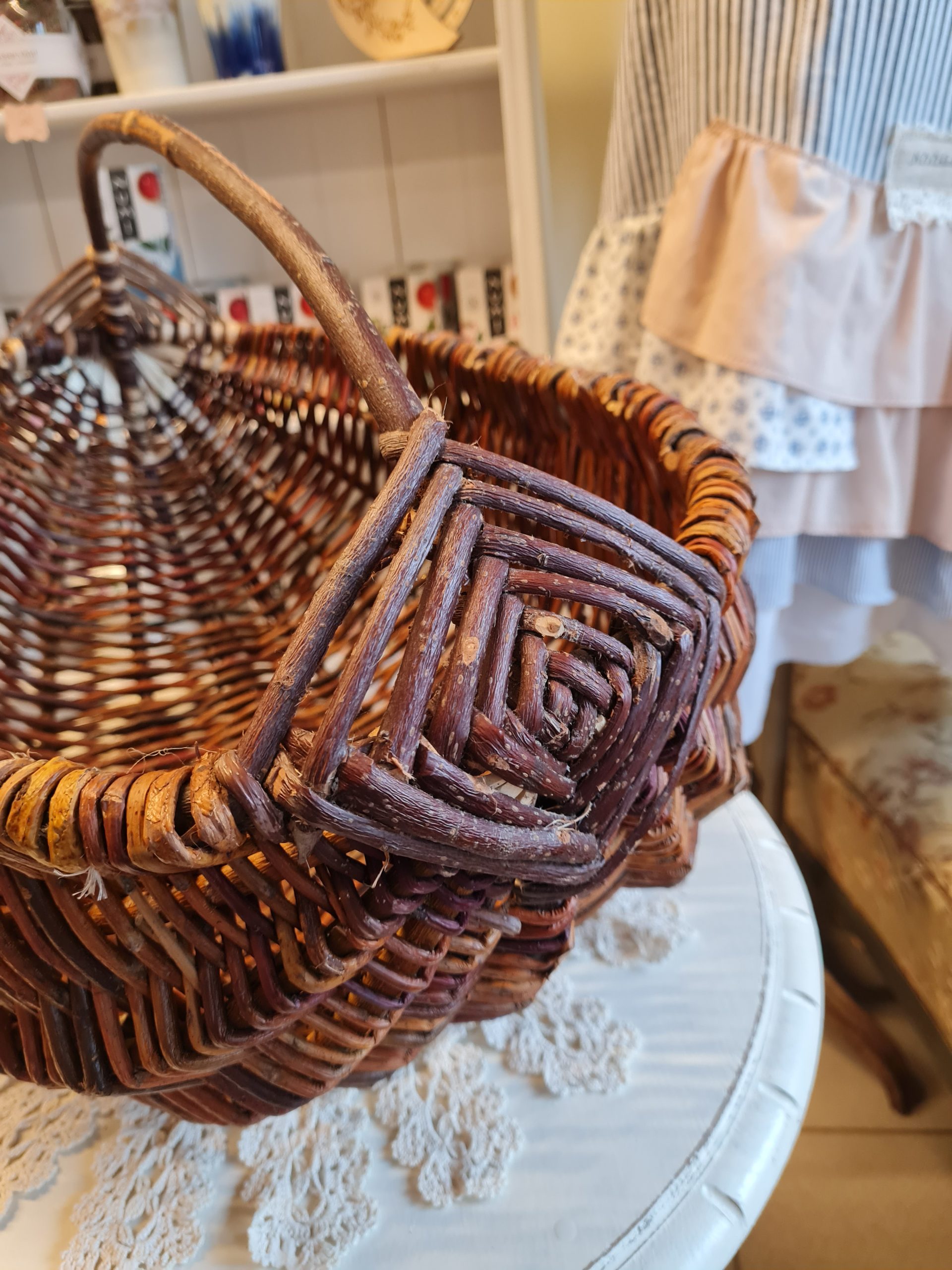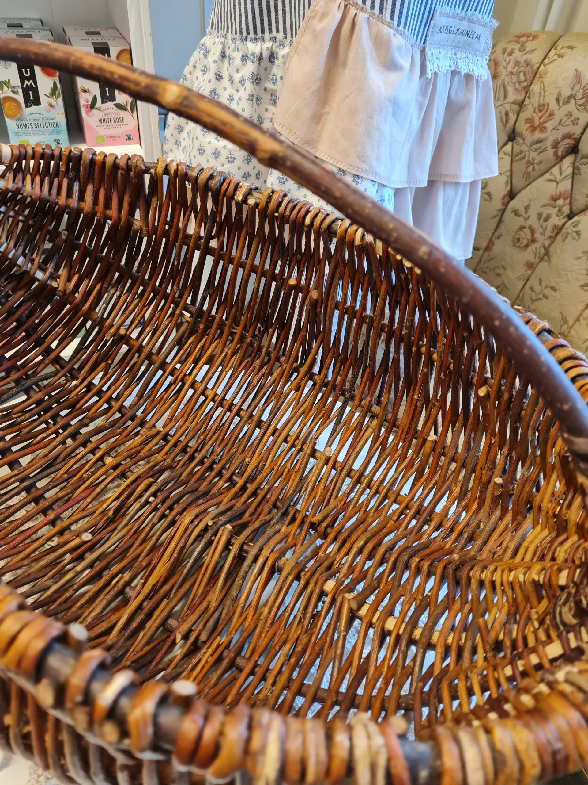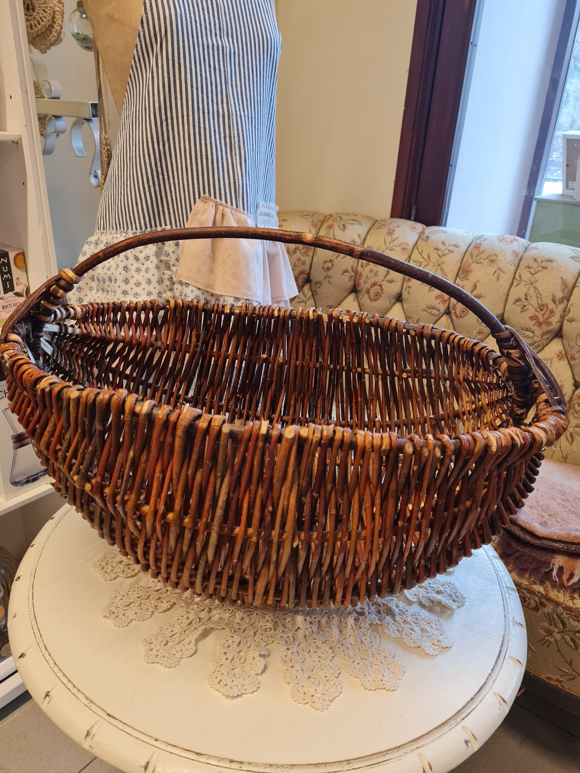 Hand-woven spacious basket with handle Hand-woven wicker basket, suitable for going to the market, mushroom picking or as a home decor element