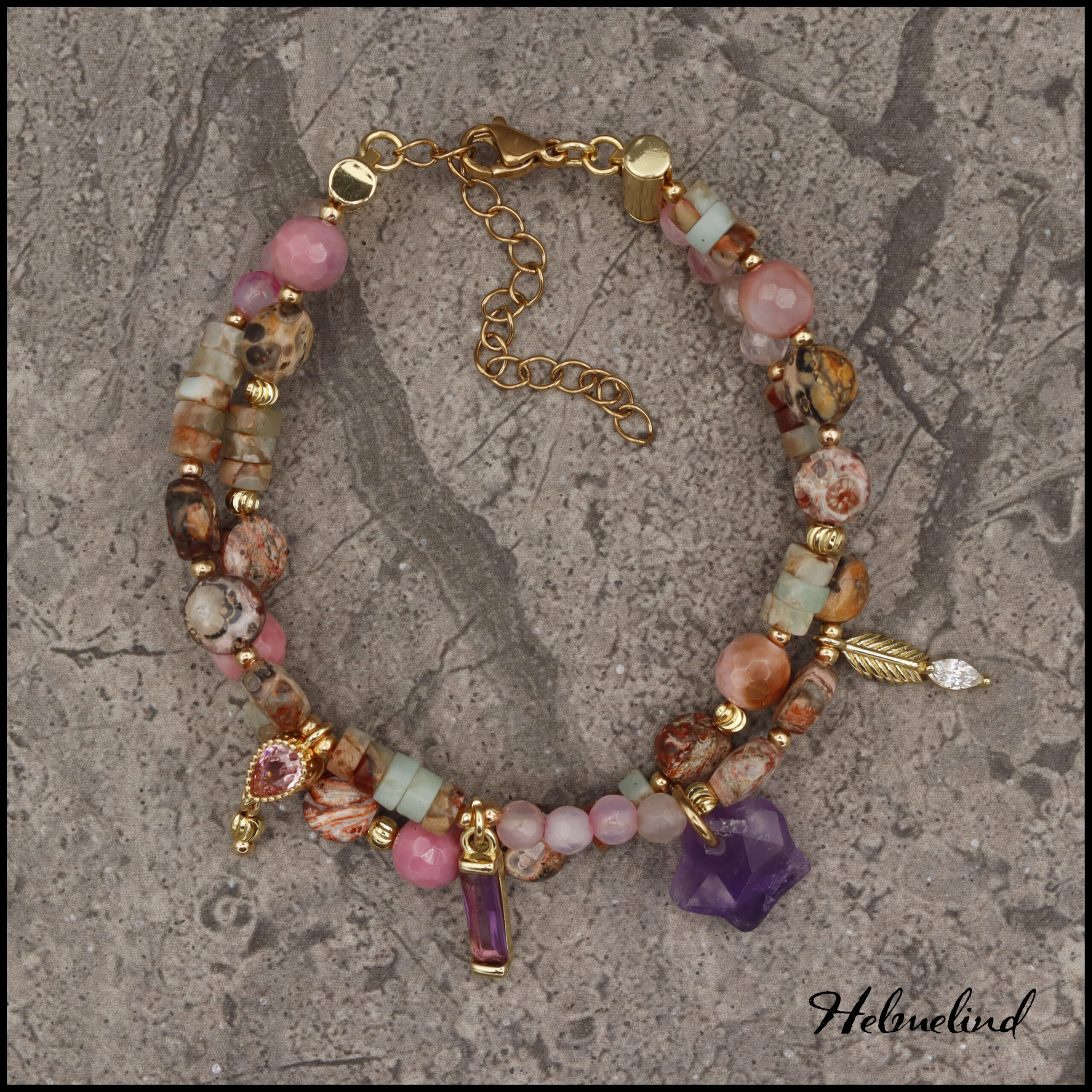 This beautiful handmade bracelet is beautifully combained with different crystals