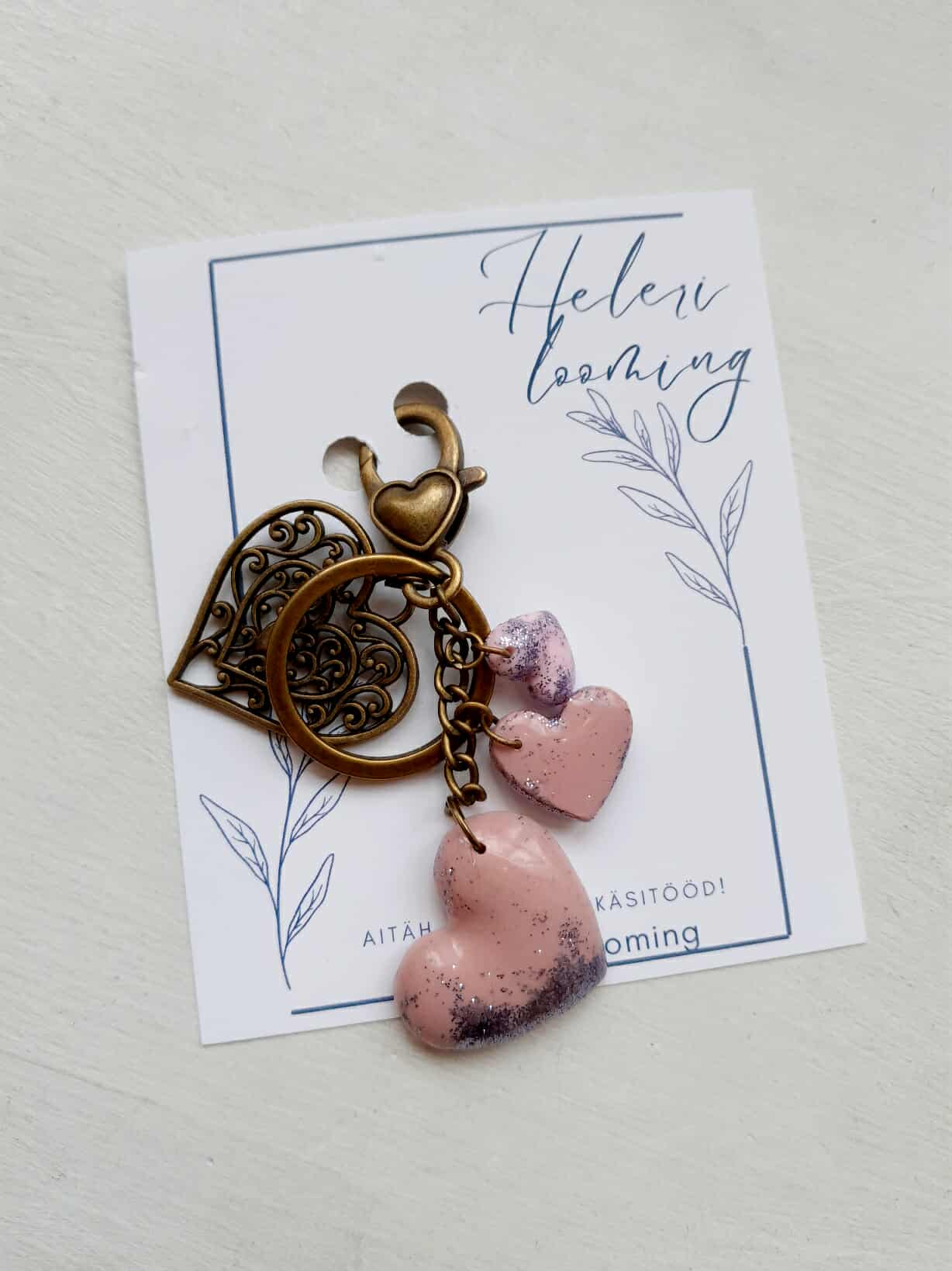 Key holder “My hearts” Material: polymer clay, metal Measurements: 2.5 x 9 cm