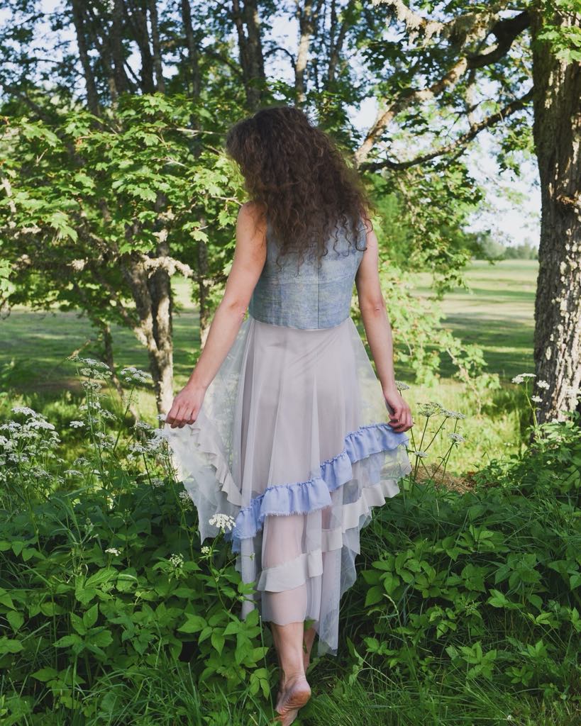 Sewn dress with effective frills