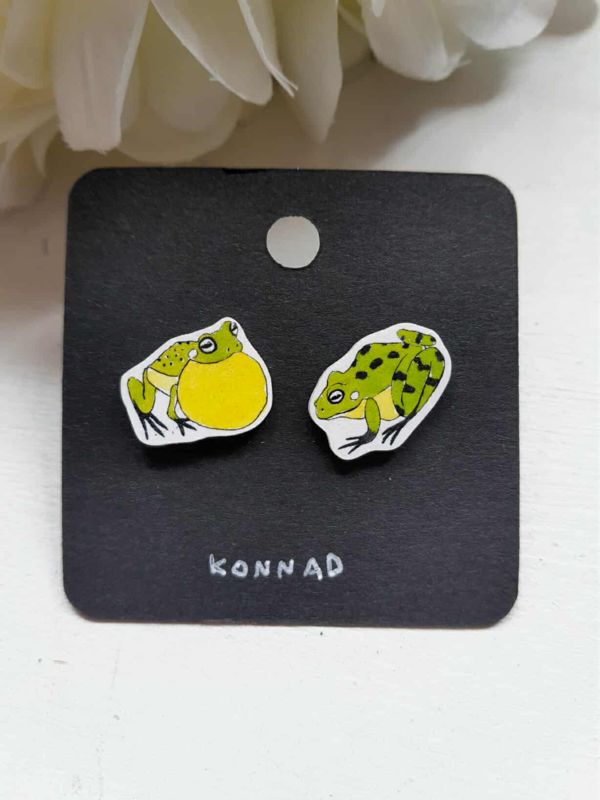 The earrings are handmade – drawn, cut out and baked in the oven.