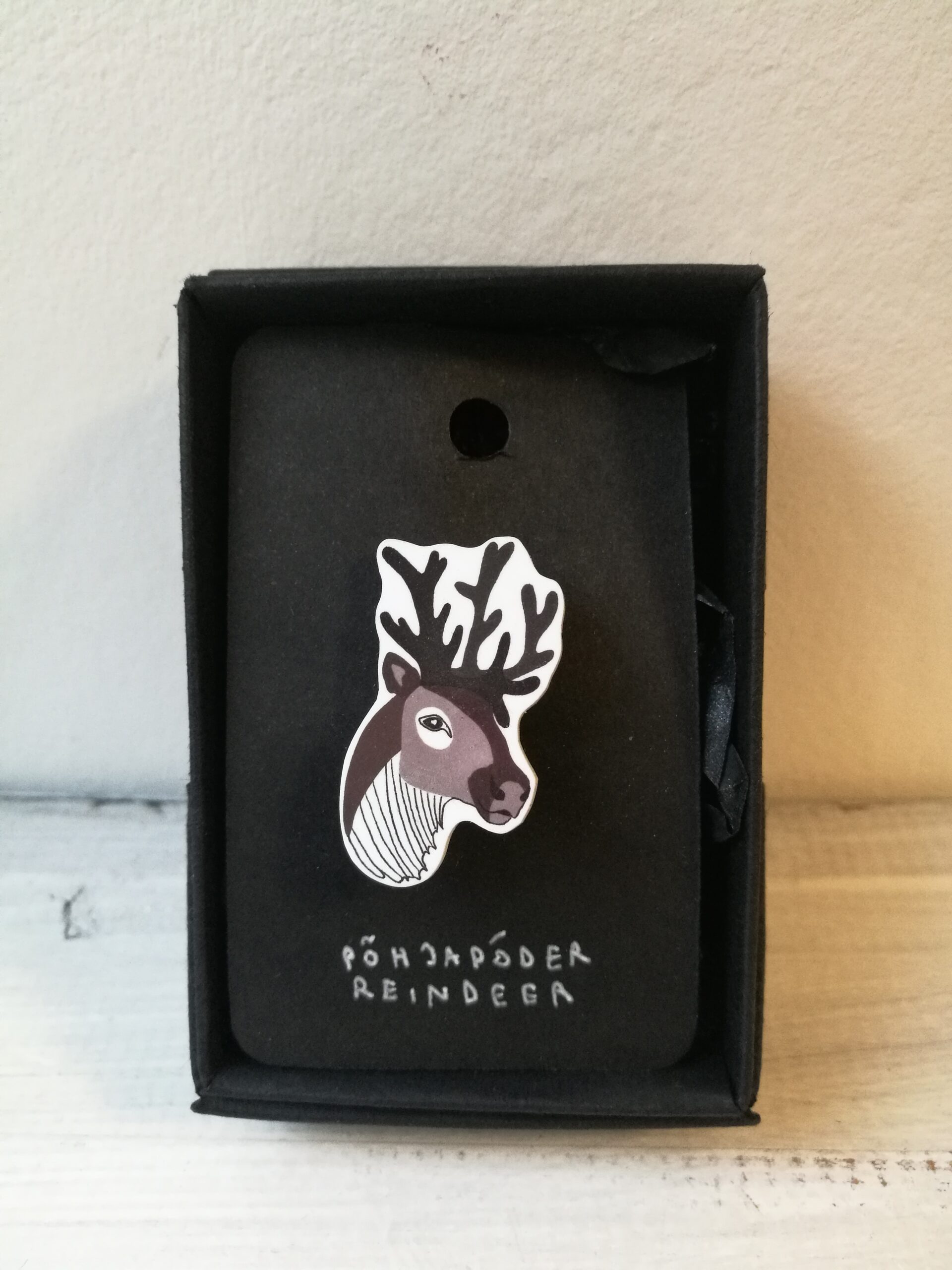 Brooch is handmade – drawn, cut out and baked in the oven.