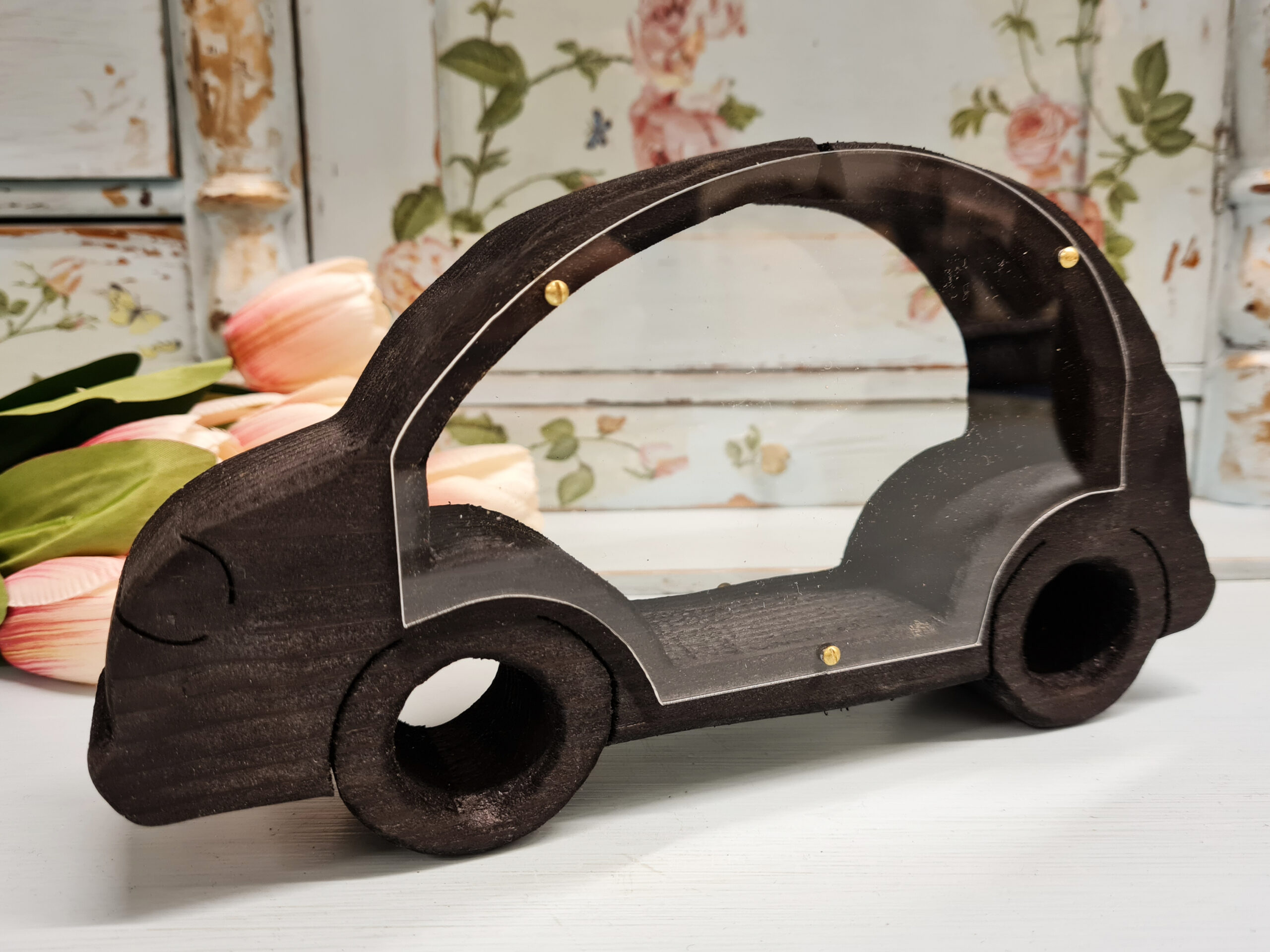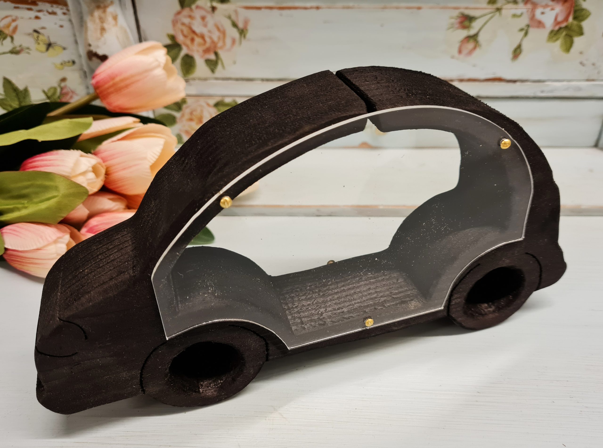 Handmade cash box made of wood and plexiglass