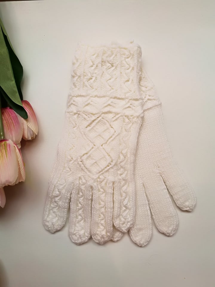 Soojast meriinolõngast pitsilised kindad, valged