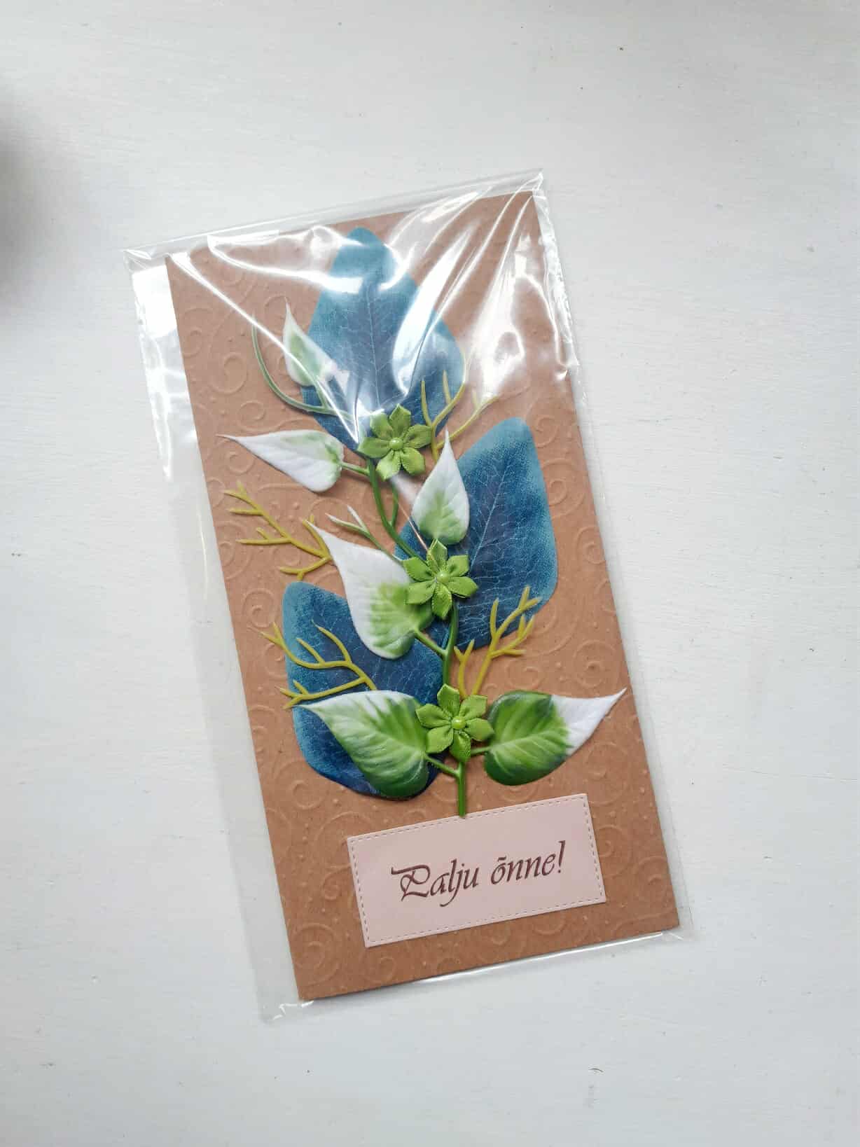 Siselehega rahakaart “Palju õnne!” Mõõdud: 10.5x21cm Materjal: Paber, papp, kartong