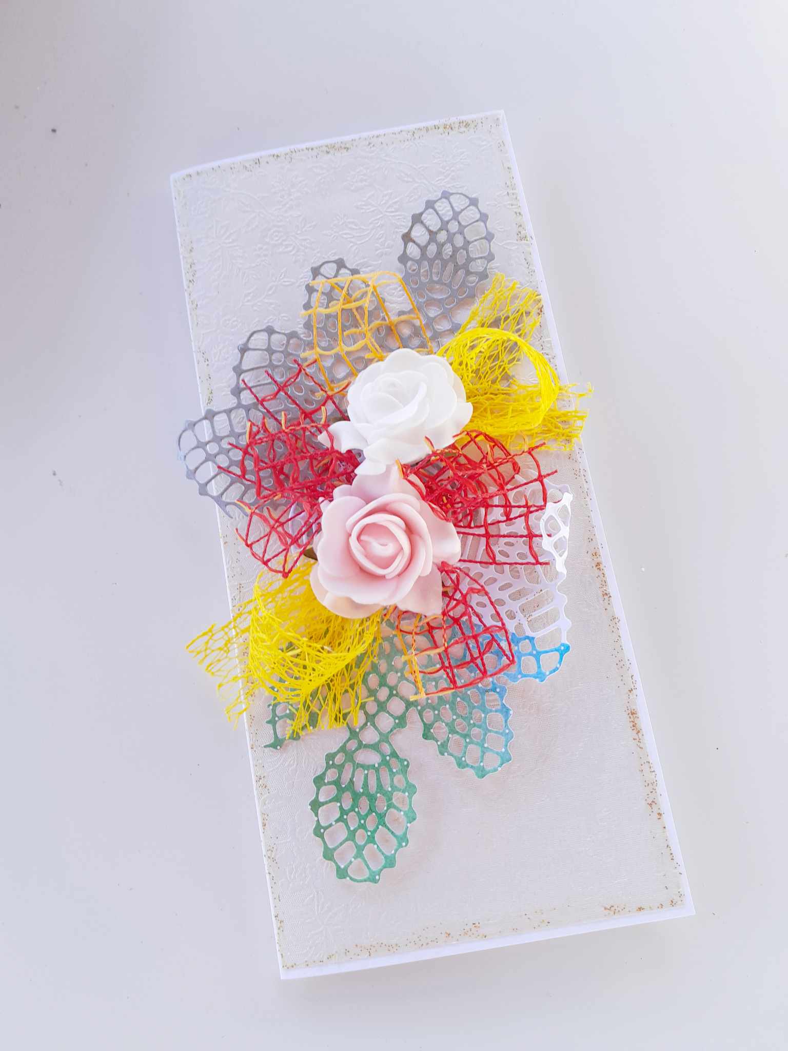 Käsitööna valminud lopsaka kaunistusega rahakaart
