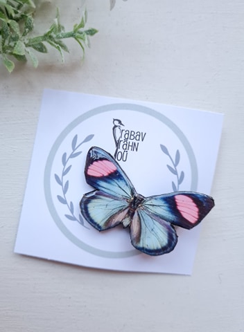 Kaunis helesinise ja roosa värviga liblikakujuline juukseklamber