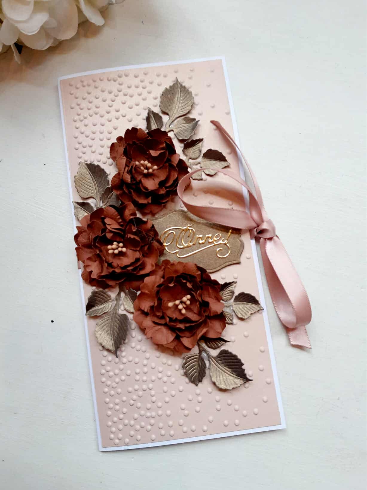 Käsitööna valmistatud kaart õnnesoovide edastamiseks.