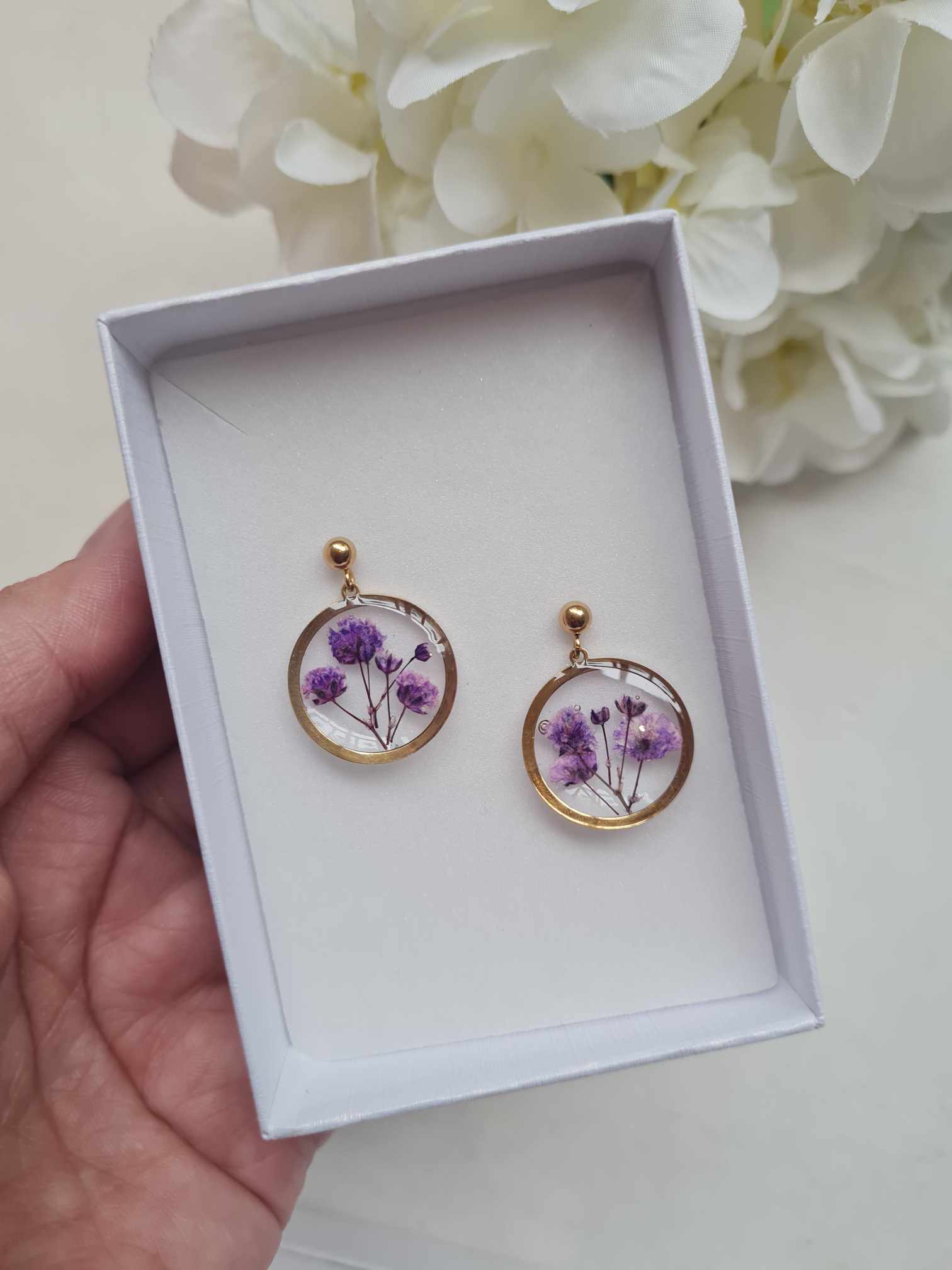 Kõrvarõngad kuivatatud õitest ja epoksiidvaigust – lilla kipslill
