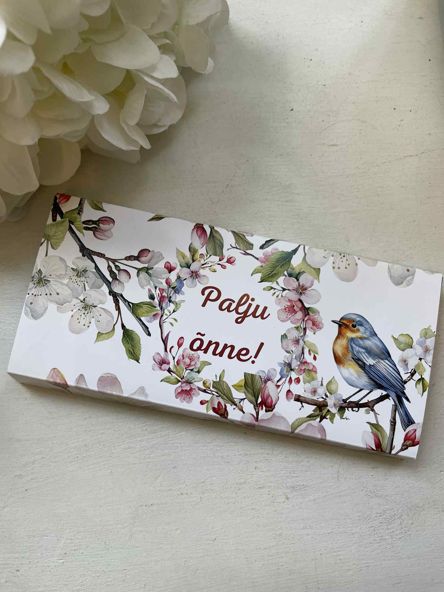 Disainitud ümbrisega šokolaad “Palju õnne!” seob endas kaardi praktilisuse ja šokolaadi magususe.