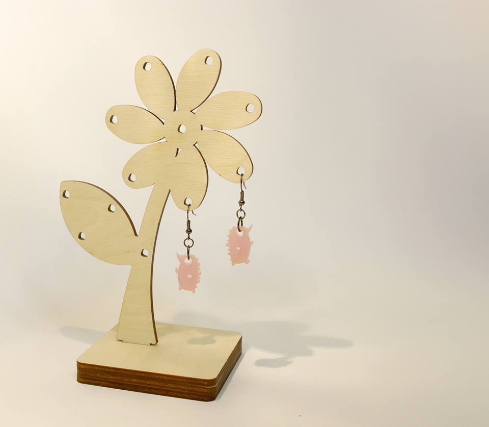 Lill sinu ehetele. Lillekujuline vineerist ehtepuu kuni 10 paari kõrvarõngaid.