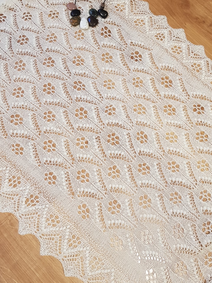 Kaunis ja õhuline haapsalu sall kauni Evelin Ilvese mustriga.