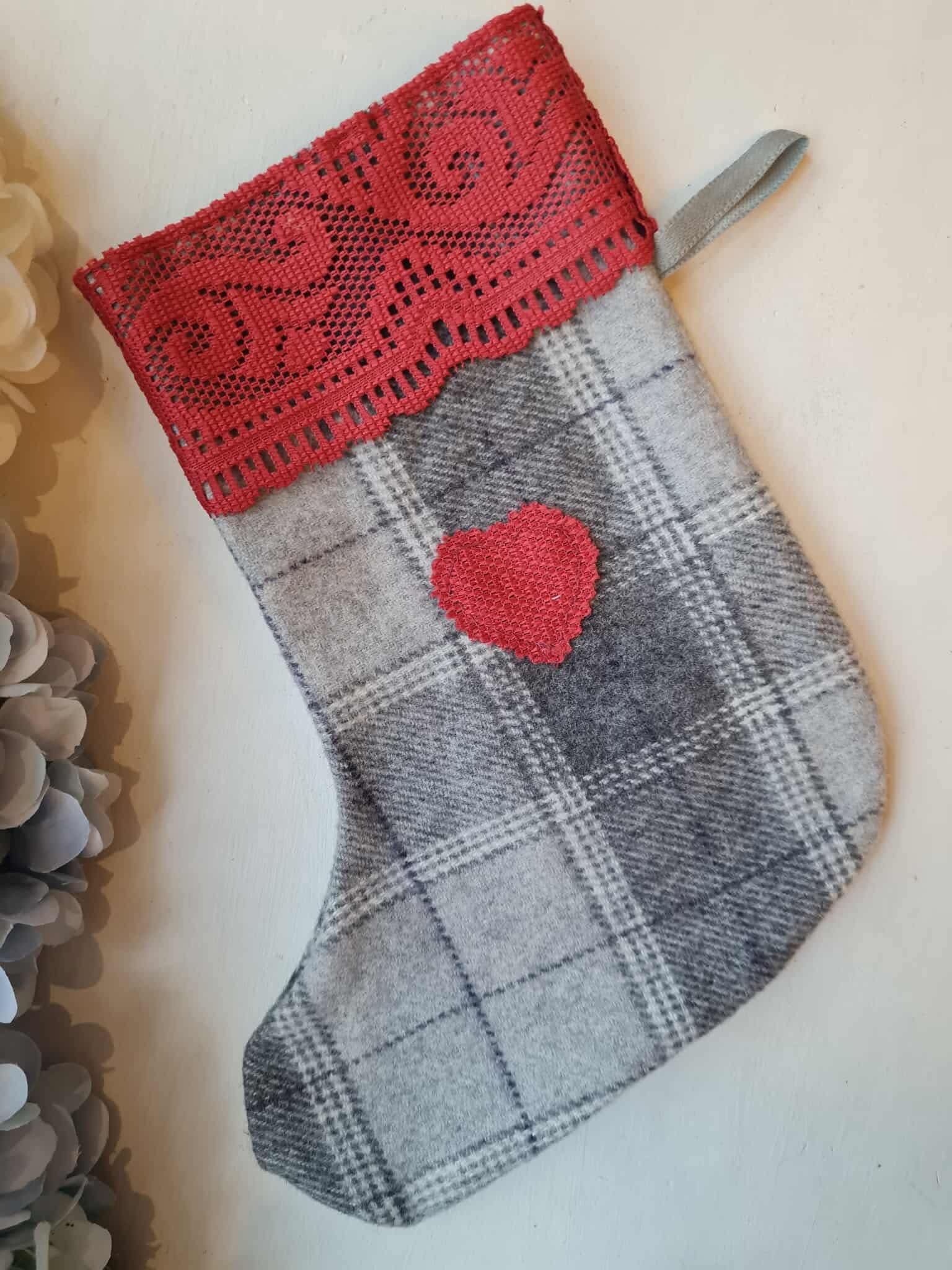 Käsitsi tehtud hall päkapikusokk