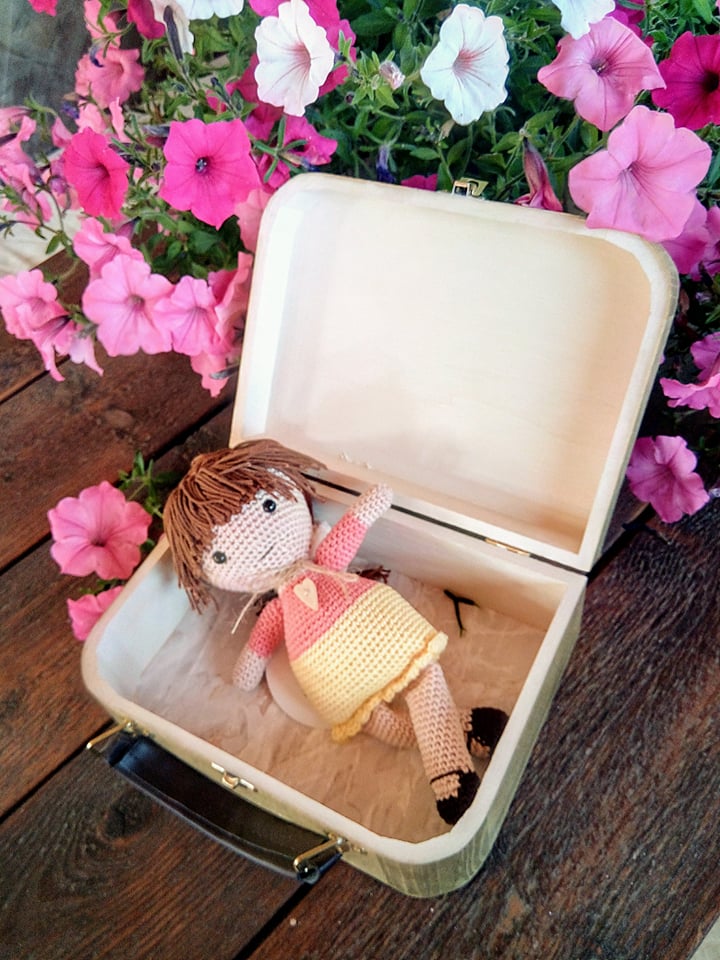 Mõnus heegeldatud nukk Saara, kes lausa nõuab, et teda kaissu võetaks. 🙂