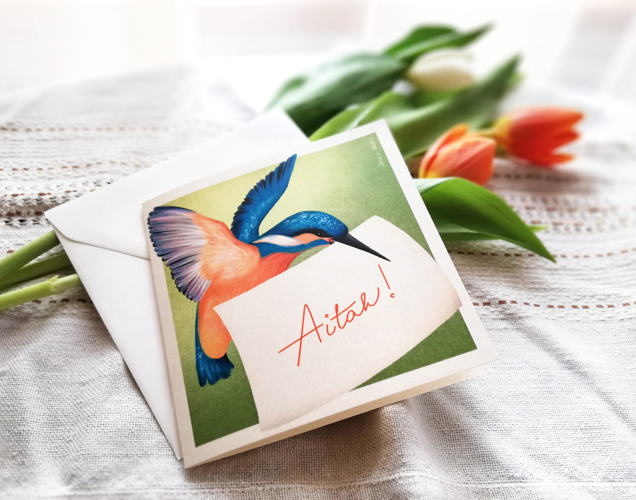 Armas kaart jäälinnuga ja toreda sõnumiga on valminud digijoonistusena Maiu Vares loomingust.