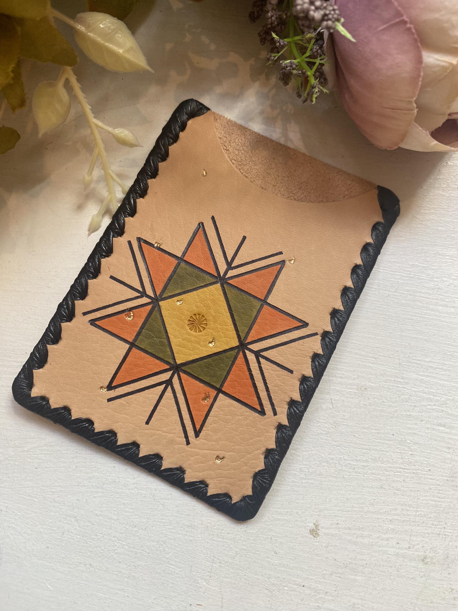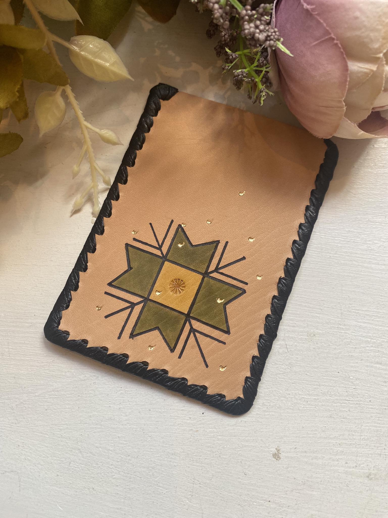 Nahast kaarditasku käsimaalinguga “Kaheksakand”