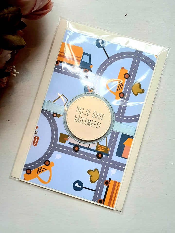 Õnnitluskaart “Palju õnne väikemees!”Kaasas ümbrik.