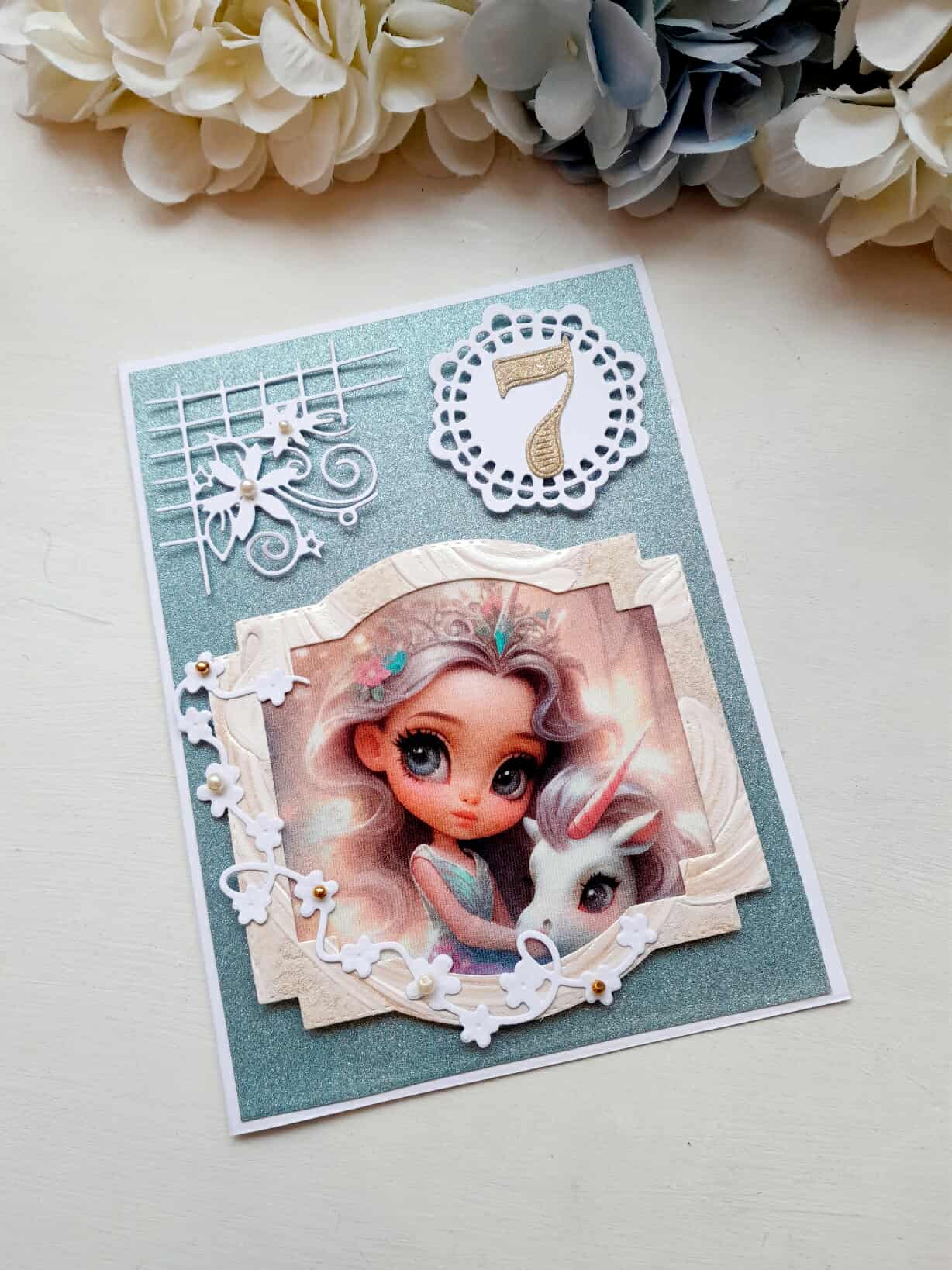 Käsitööna valminud kaart õnnitlemiseks.