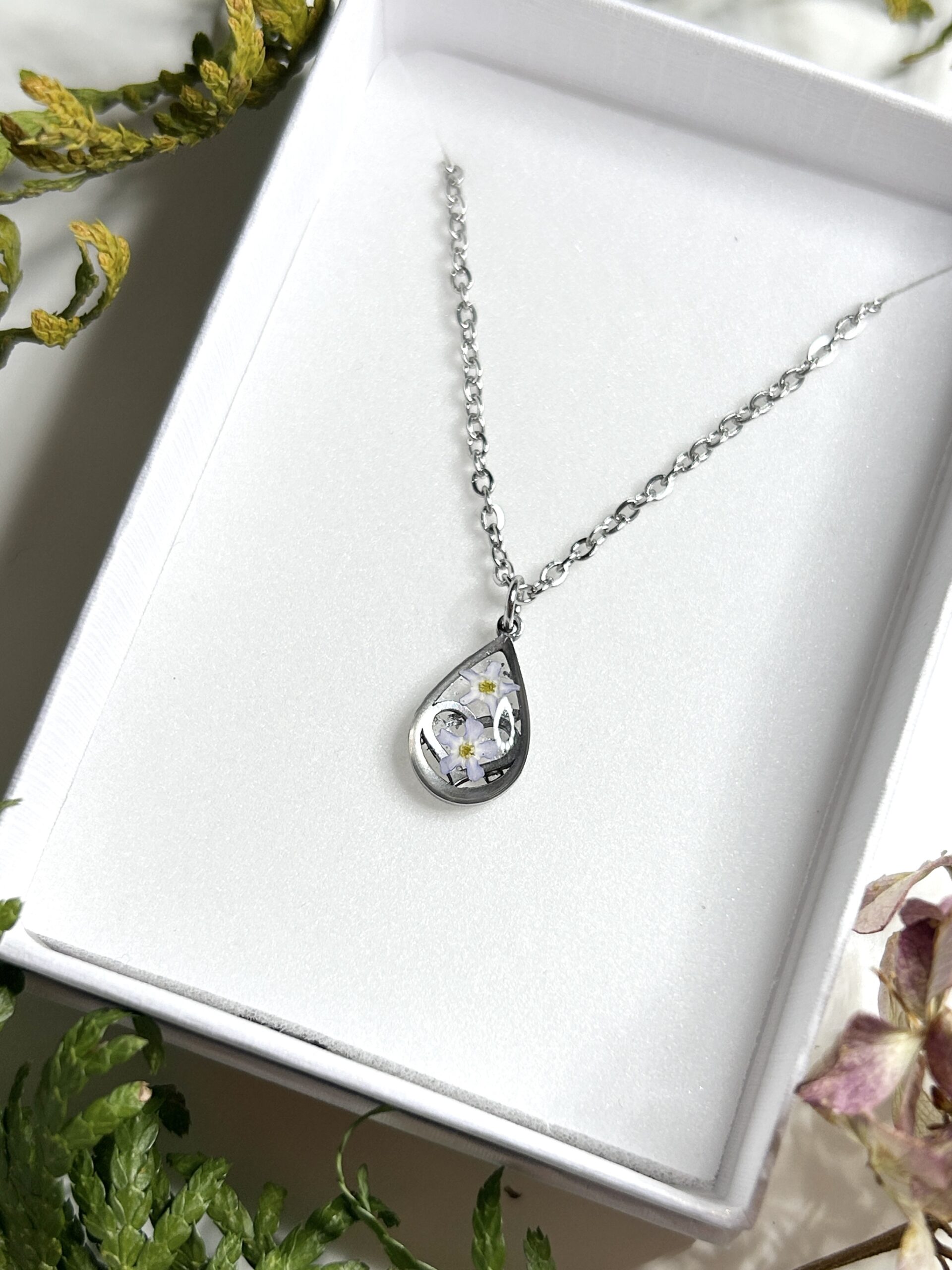Materjalid: roostevaba teras, epoksiidvaik, kuivatatud õied