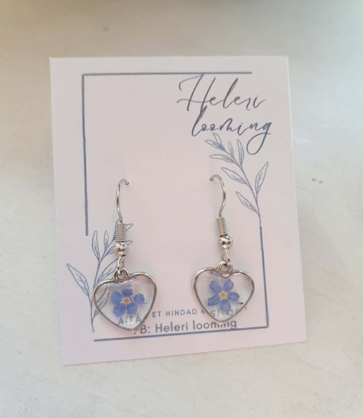 Kaunid käsitööna valminud kõrvarõngad kuivatatud õite ning epoksiidvaiguga.