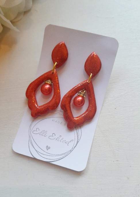 Kõrvarõngad on voolitud käsitsi polümeersavist- iga detail on läbi mõeldud ning kaunilt viimistletud.