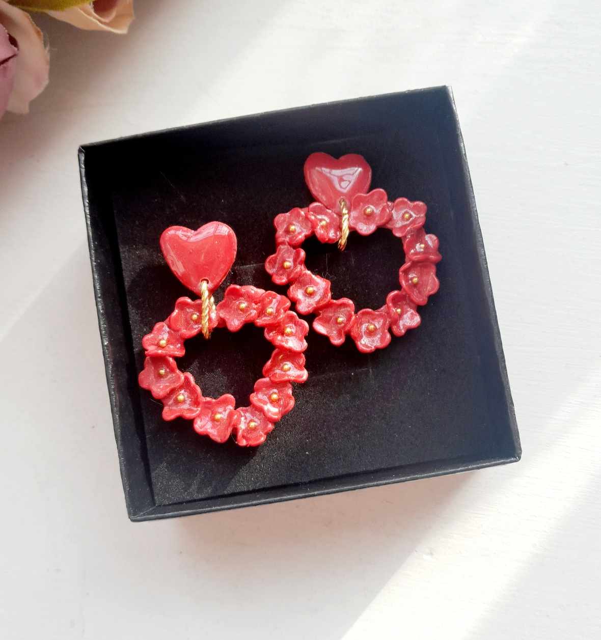 Käsitsi meisterdatud muinasjutulised kõrvarõngad “Lillelised südamed”