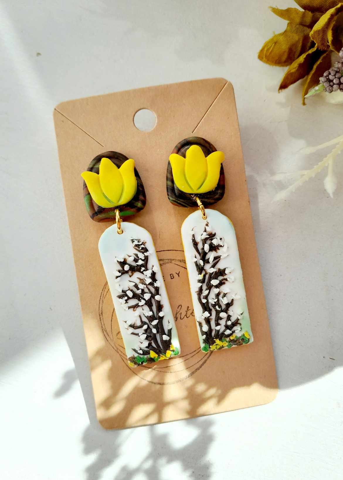 Kõrvarõngad on voolitud käsitsi polümeersavist- iga detail on läbi mõeldud ning kaunilt viimistletud.