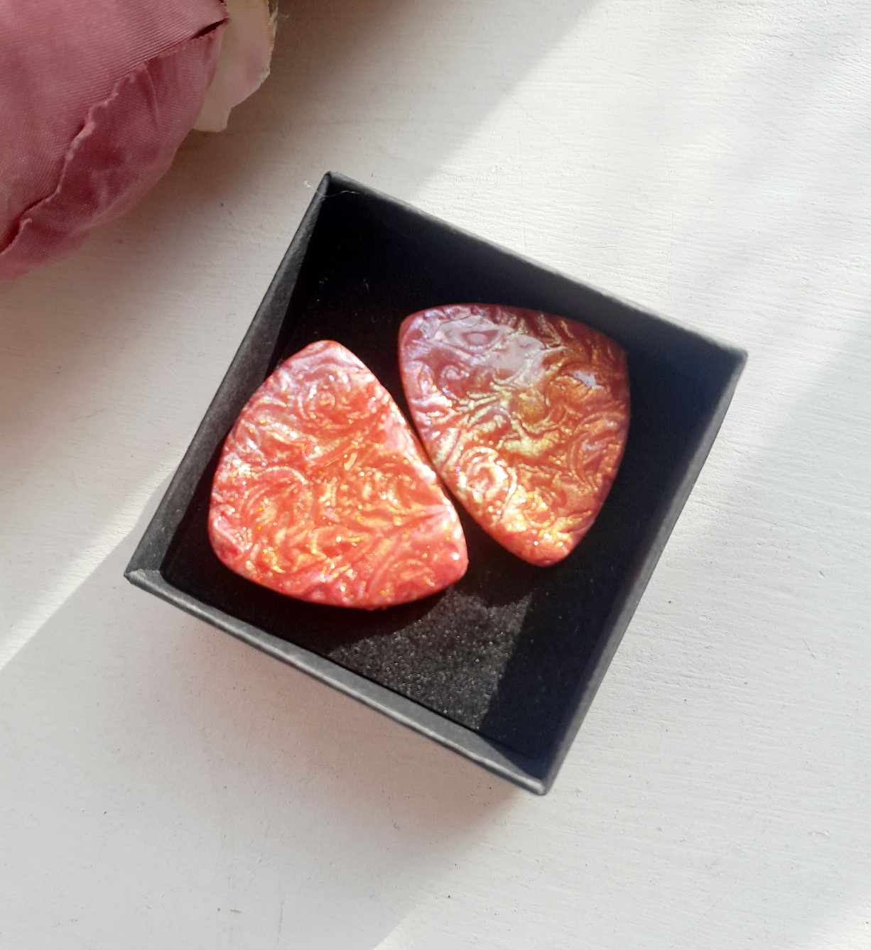 Kõrvarõngad on voolitud käsitsi polümeersavist- iga detail on läbi mõeldud ning kaunilt viimistletud.