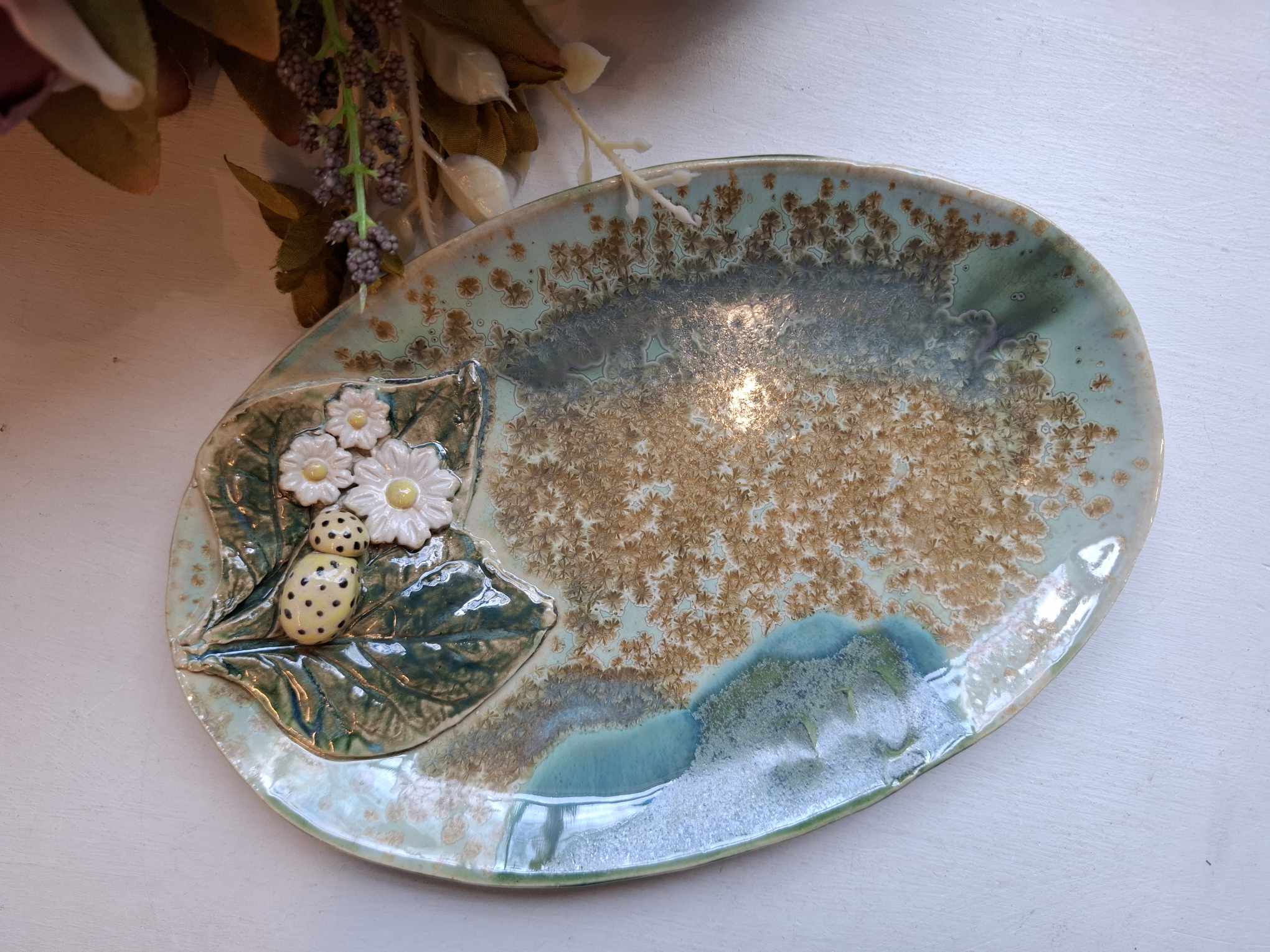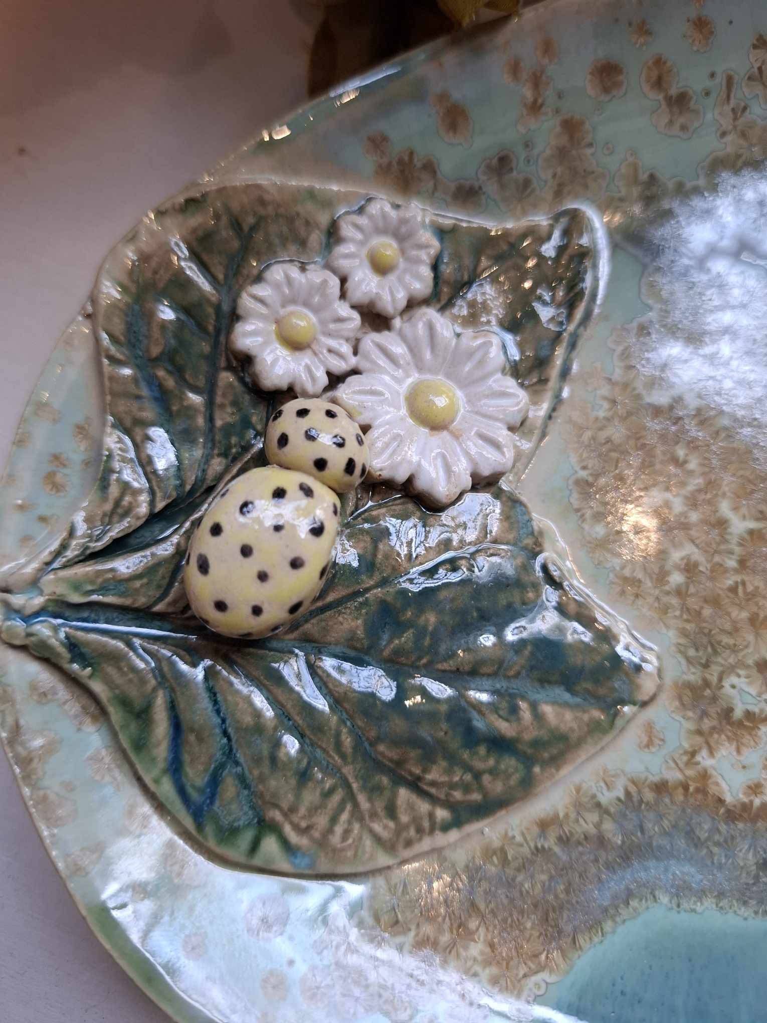 Tõeliselt kevadehõnguline kaunis keraamiline vaagen vahva kollase õnnetriinuga.