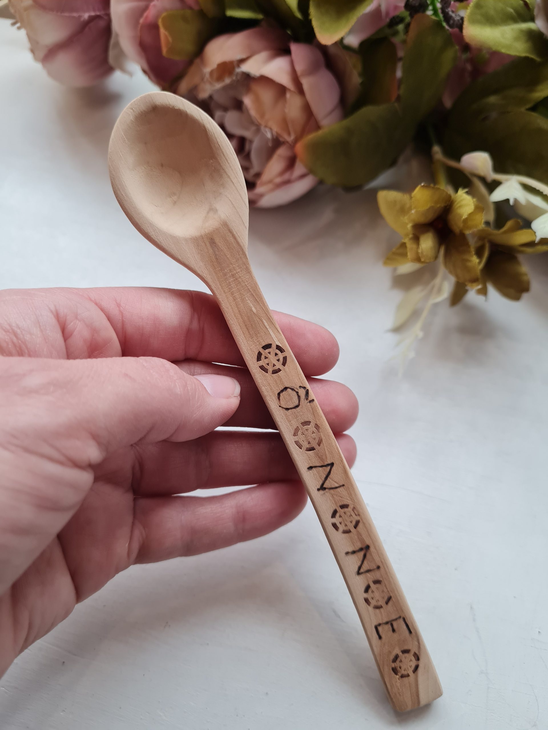Käsitsi voolitud puidust lusikas