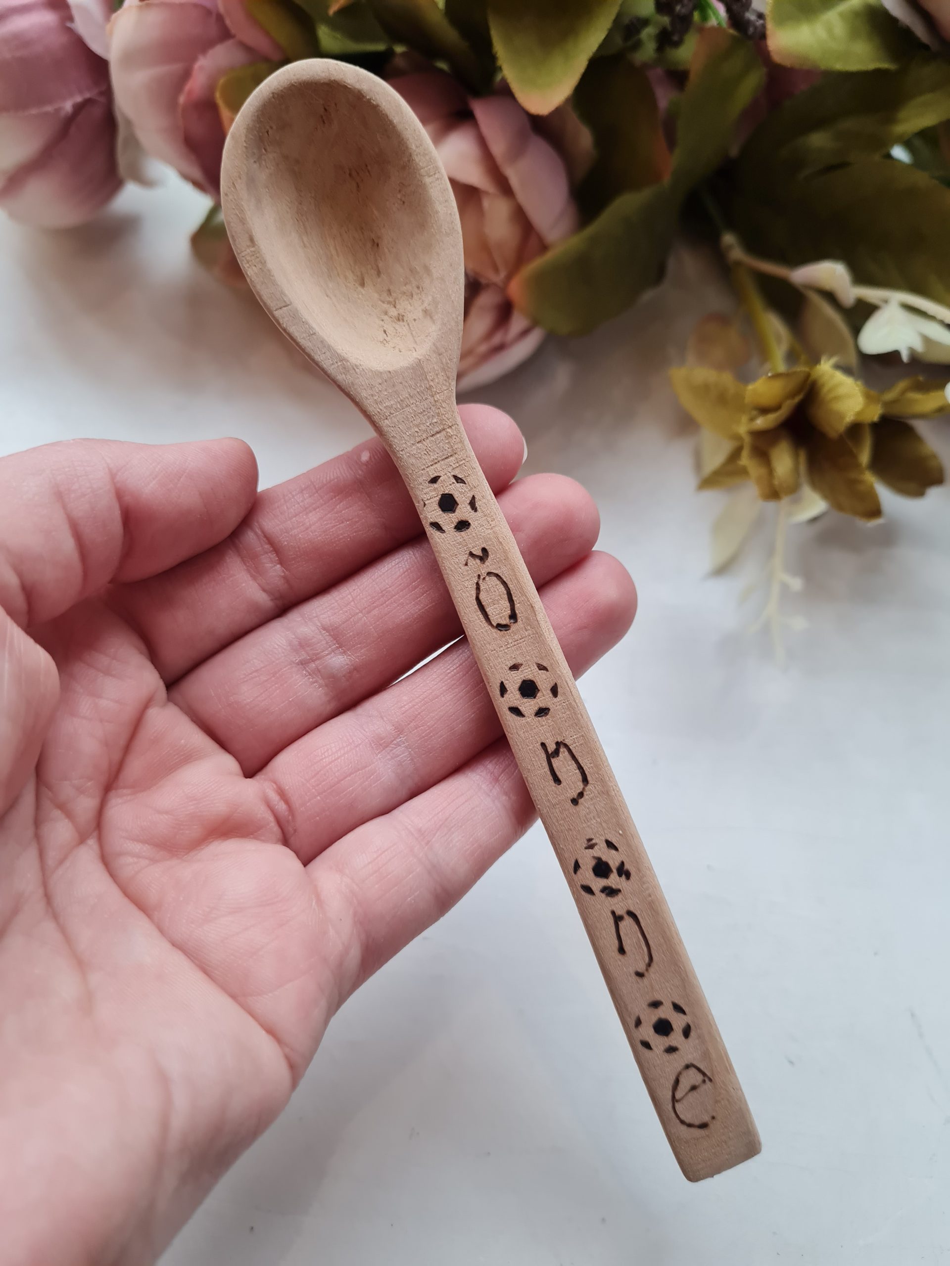 Käsitsi voolitud puidust lusikas