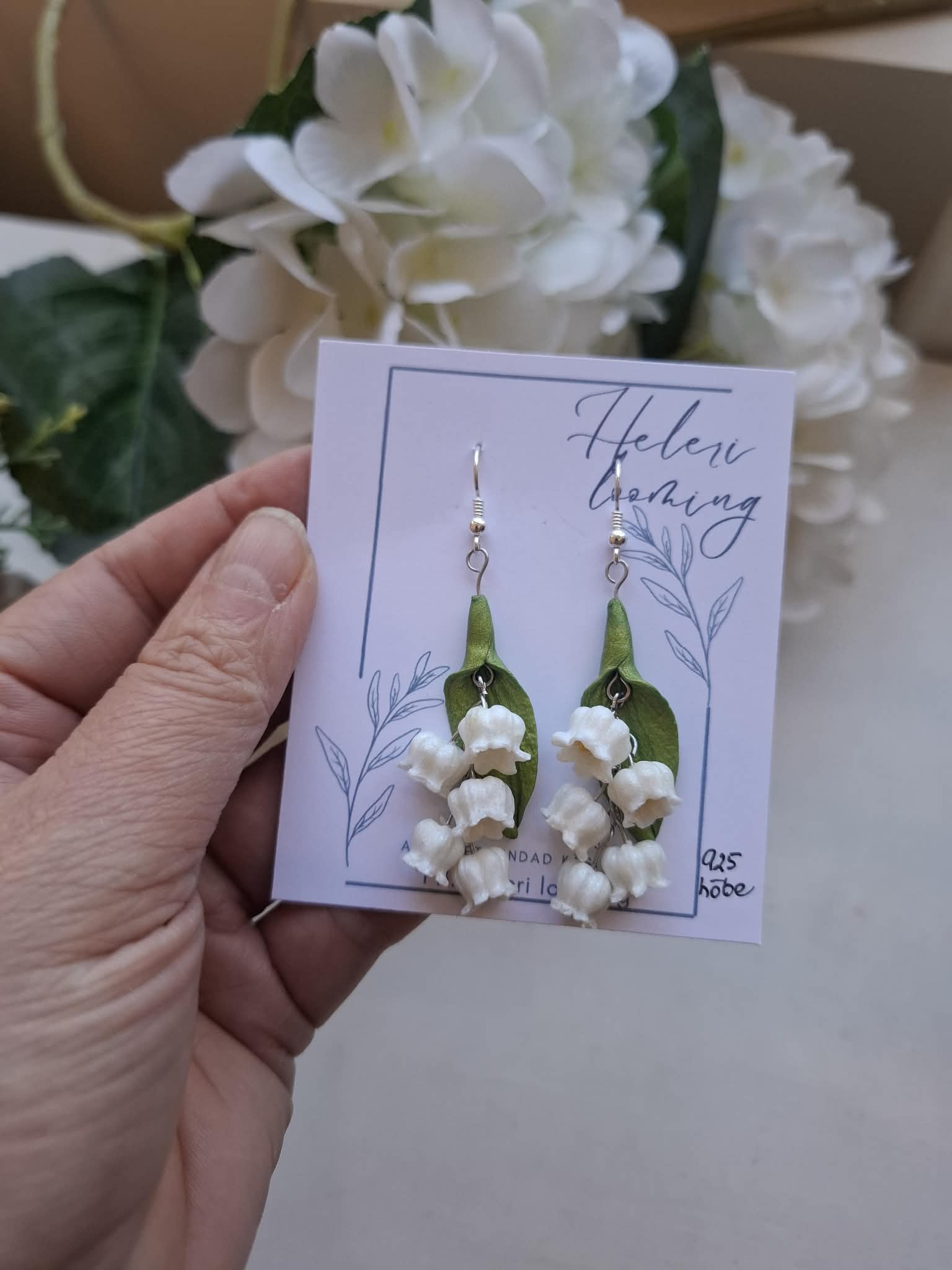 Kaunid fimosavist kõrvarõngad “Piibelehed”, hõbe 925 konksud