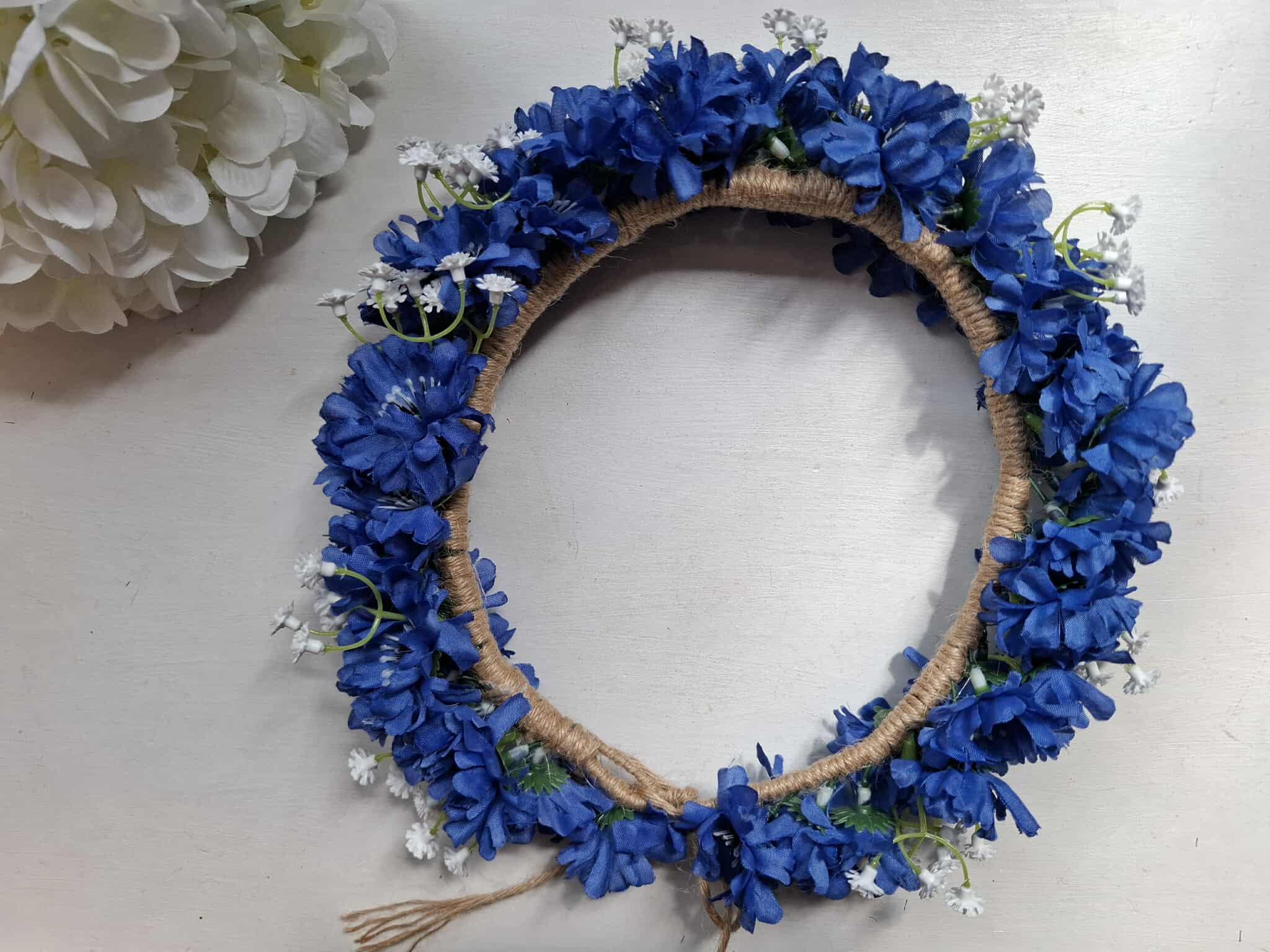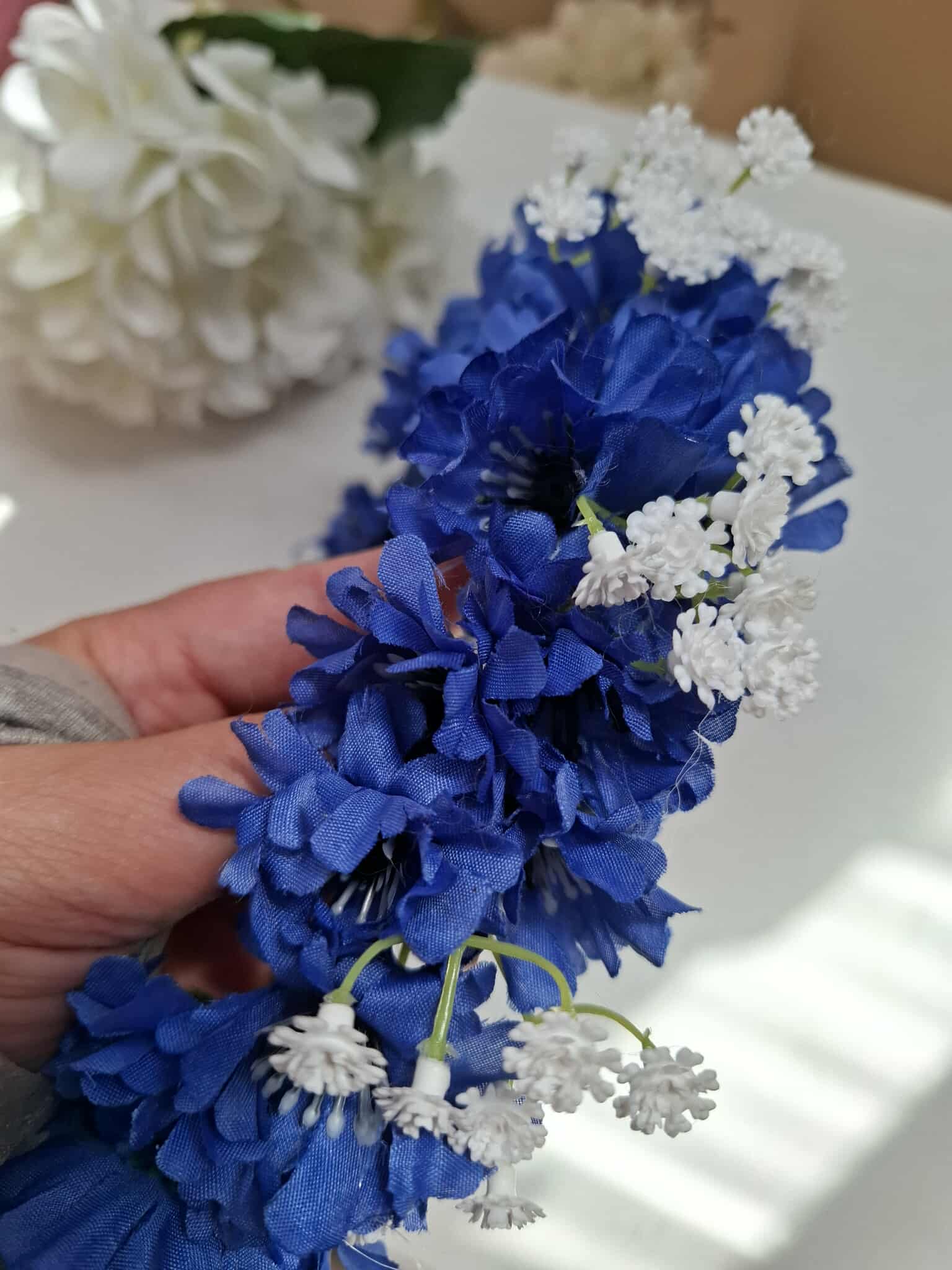 Kaunis Rahvusromantiline peapärg: rukkililled ja kipslilled