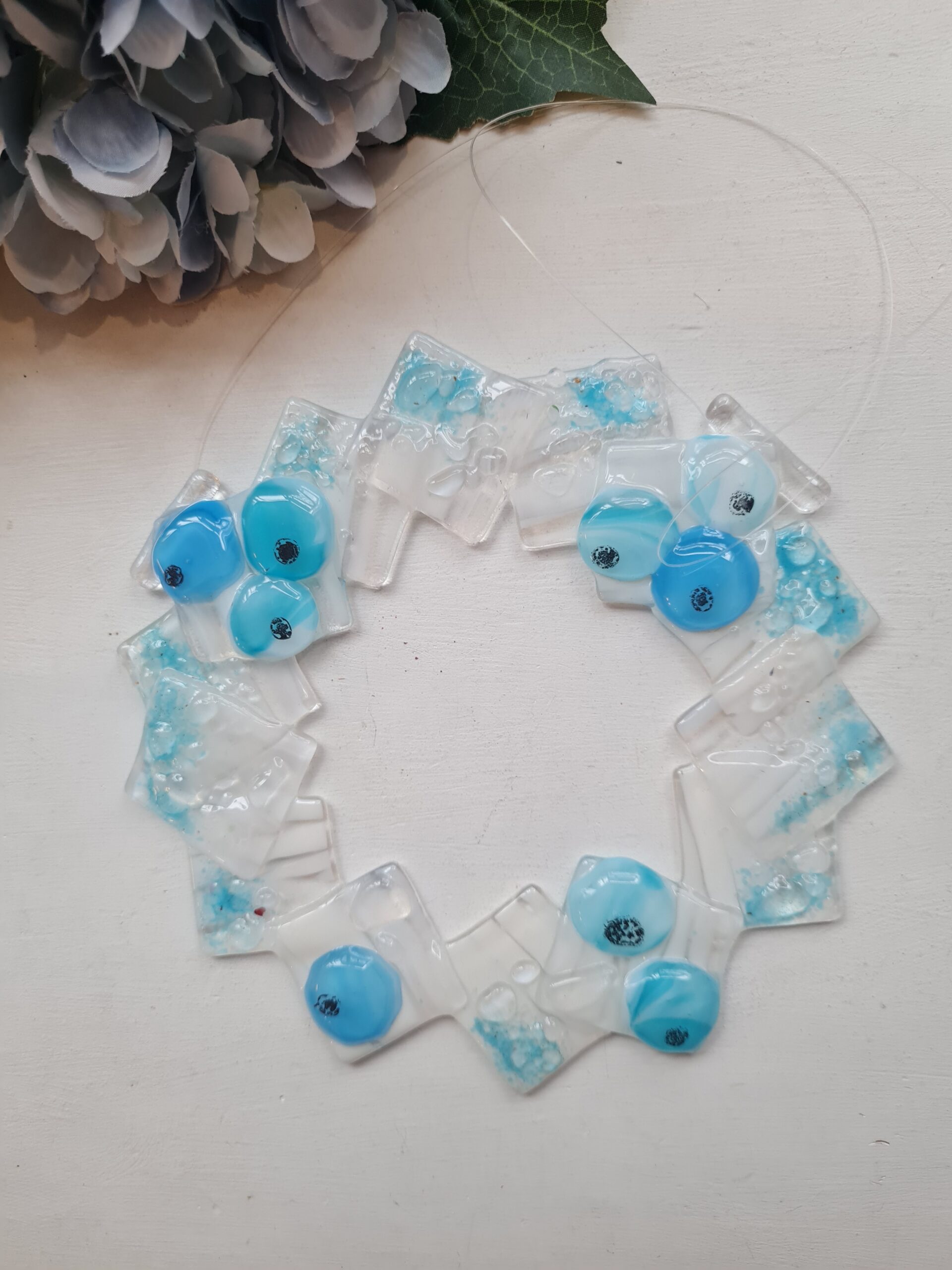 Kaunis fusing (klaasisulatus) tehnikas loodud värviline klaasvitraaž on iga kodu ehe.