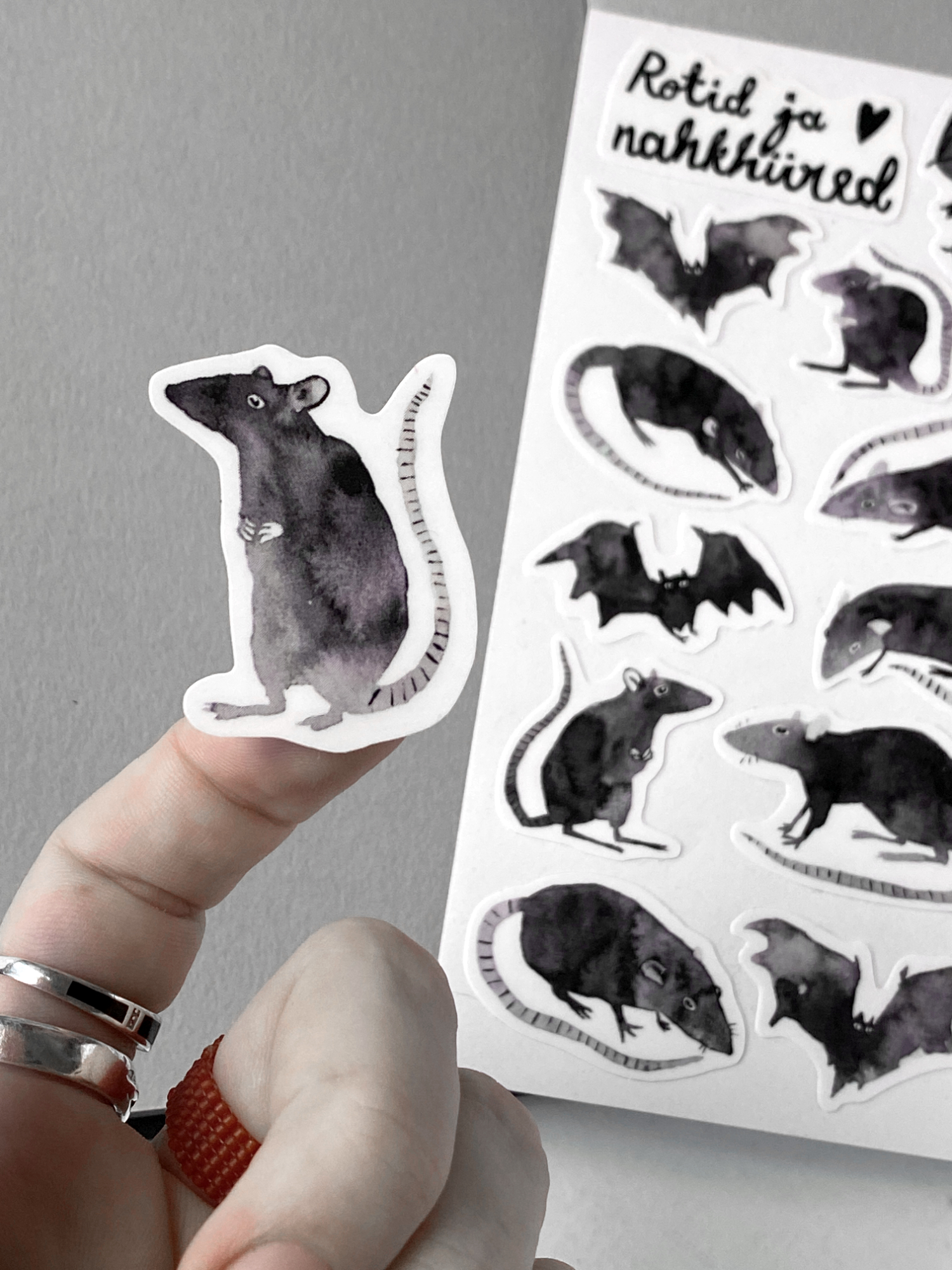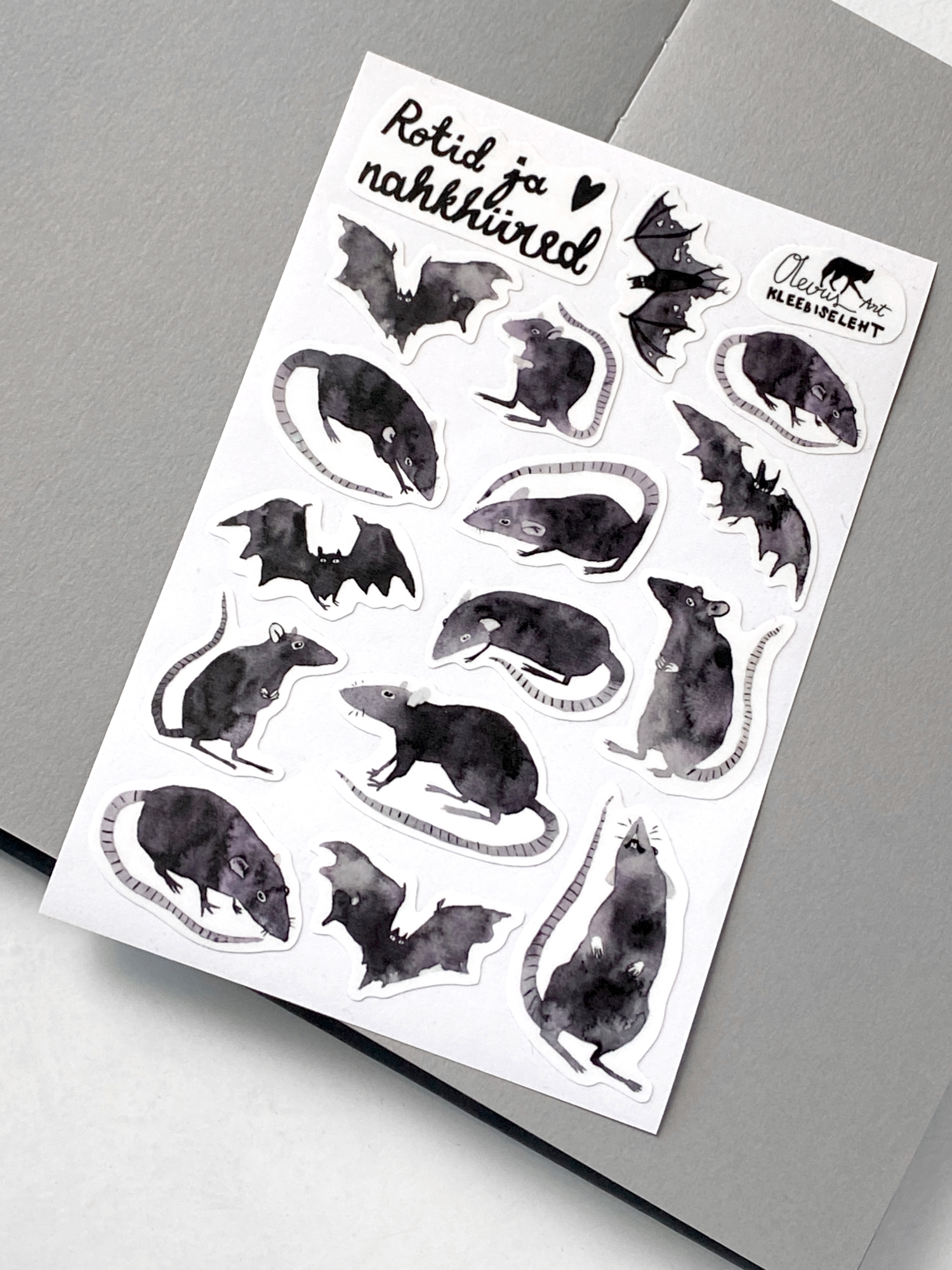 Veidi kõhe kleebiseleht on täis mõnusalt maagilisi joonistatud rotte ja nahkhiiri : )