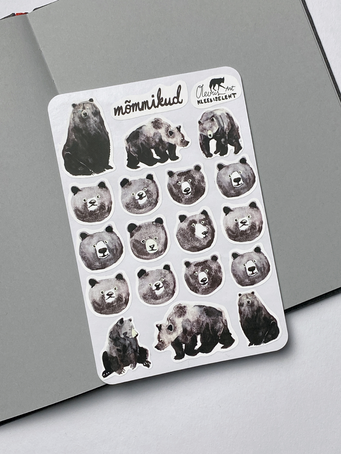 Lehel on 18 joonistatud maalilise karuga kleebist ja lisaks ka sõna “mõmmikud” on kleebis 🙂