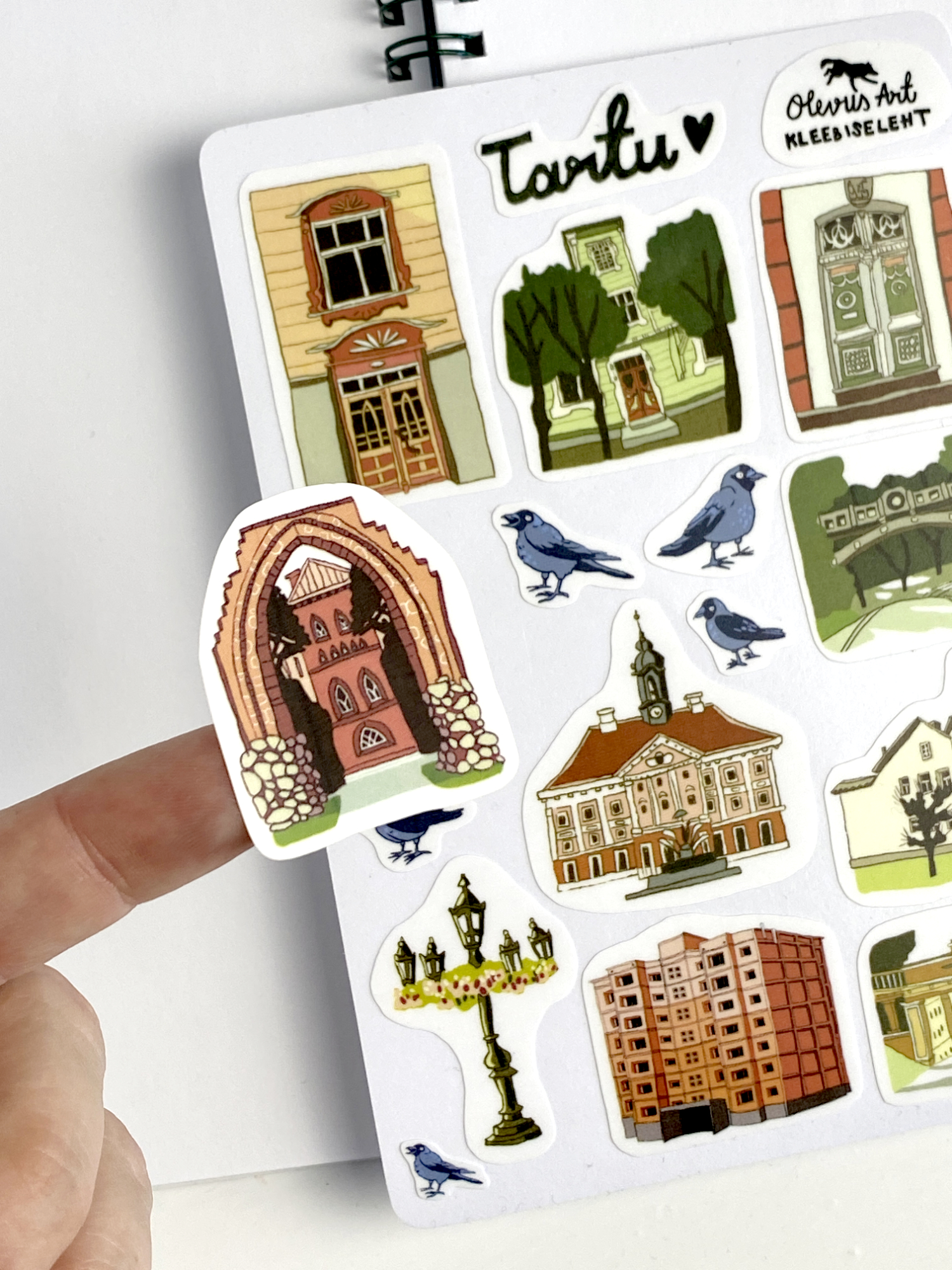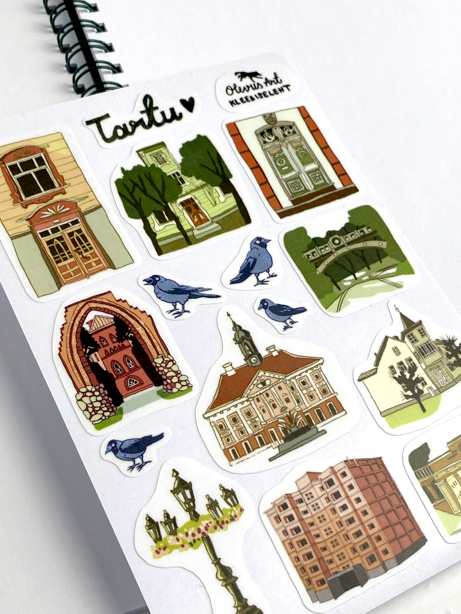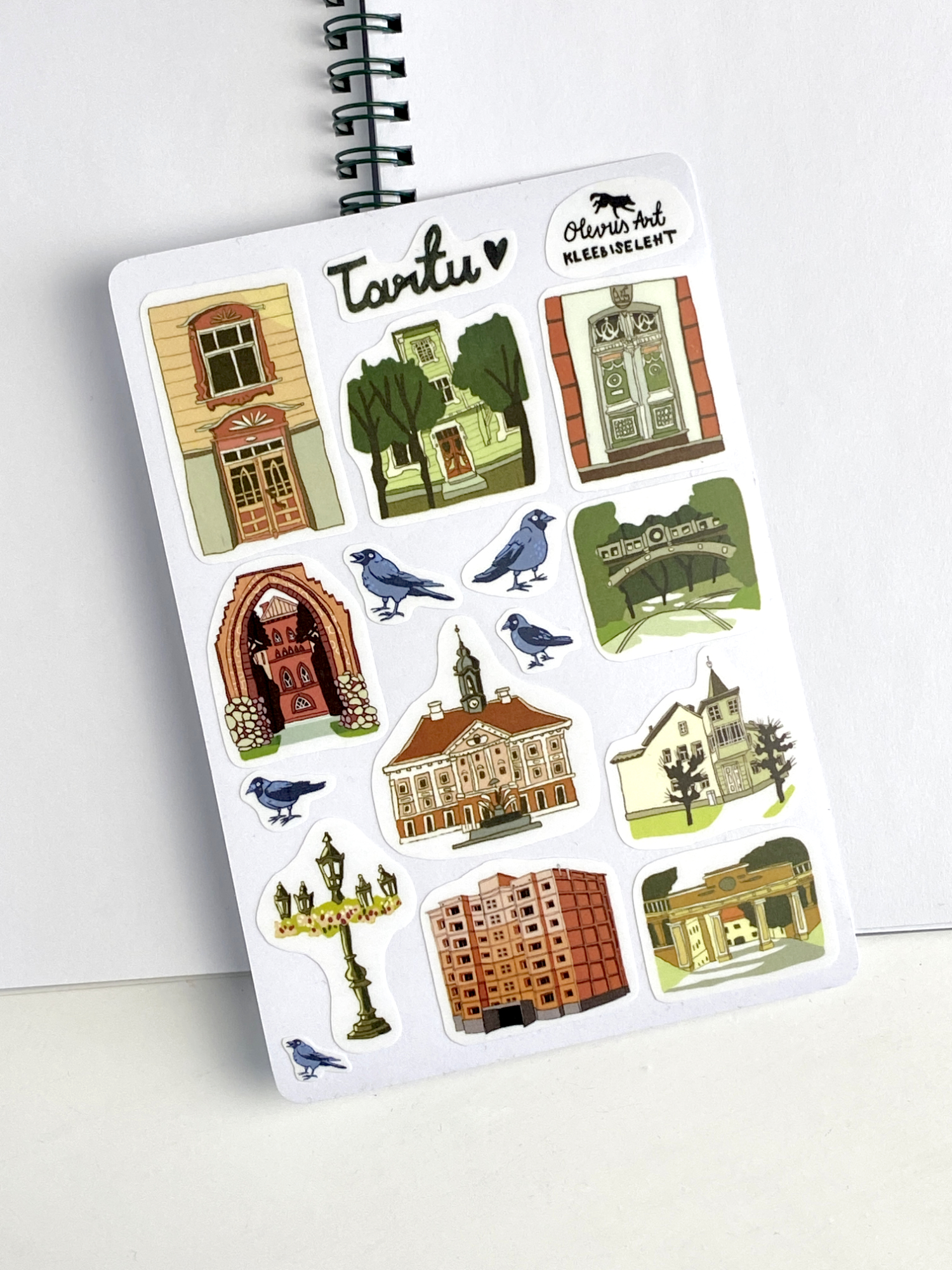 Lehel on 10 Tartu motiiviga kleebist ja 5 pisikest hakiga kleebist. Ka sõna Tartu <3 on kleebis.