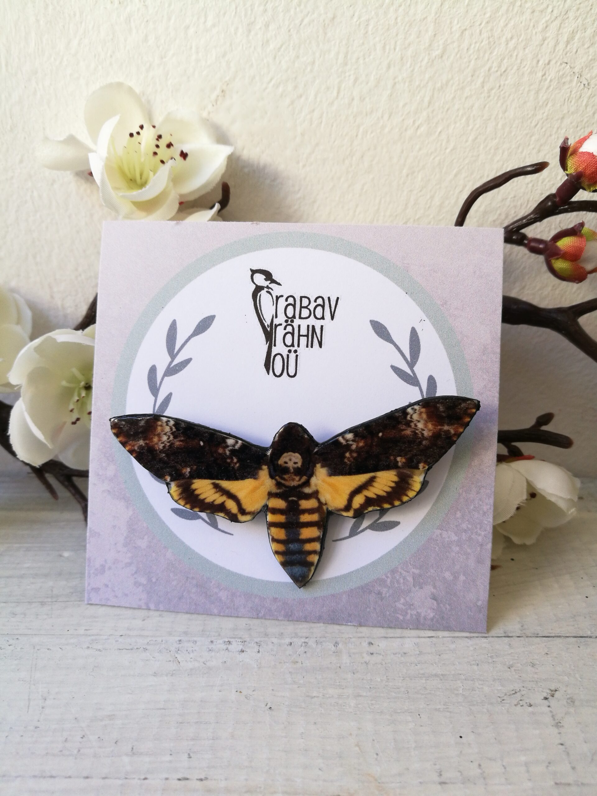 Kollase ja pruuni värvimustriga kiilikujuline pross