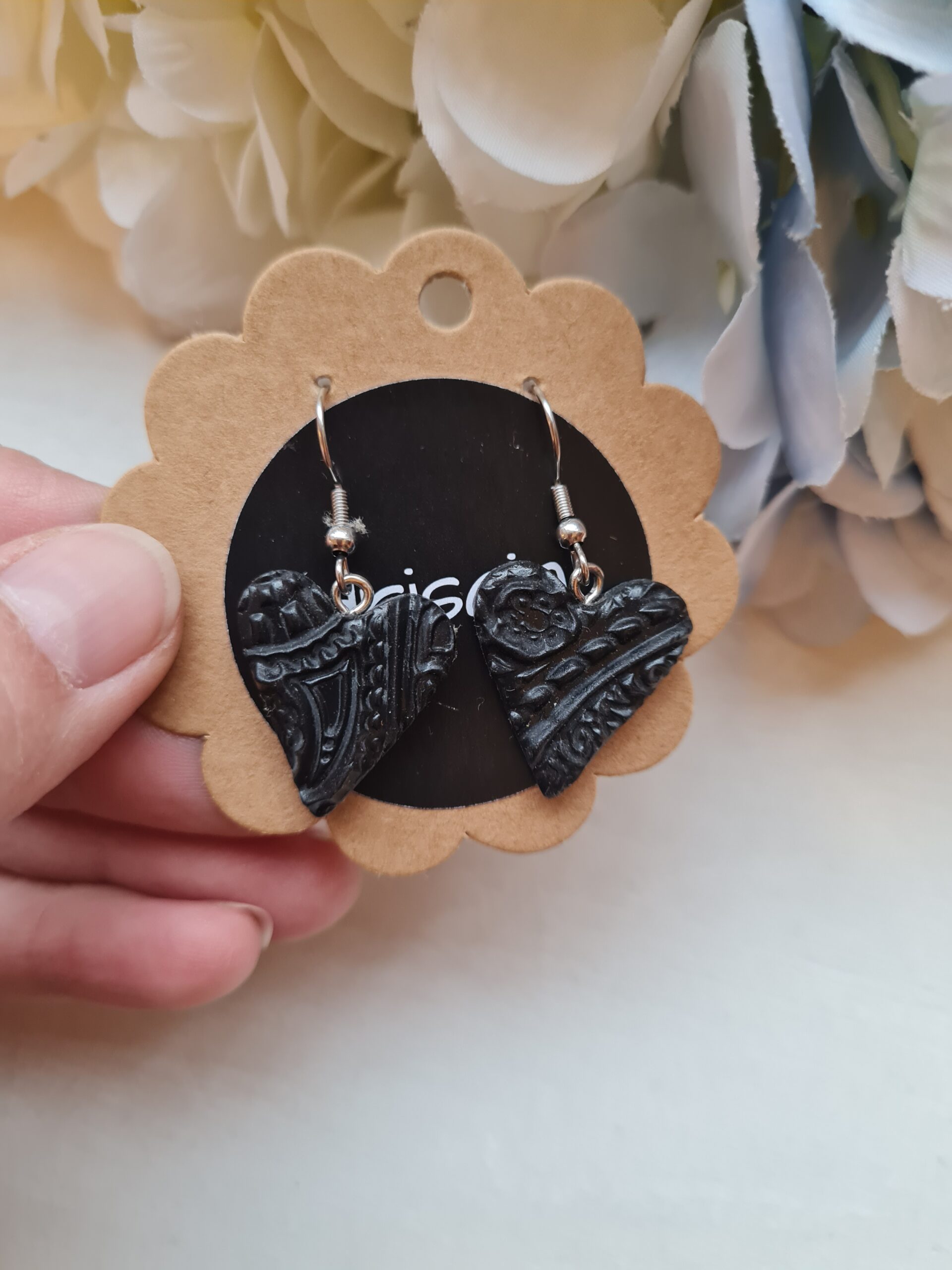 Polümeersavist valminud kerged kõrvarõngad reljeefse pinnaga.