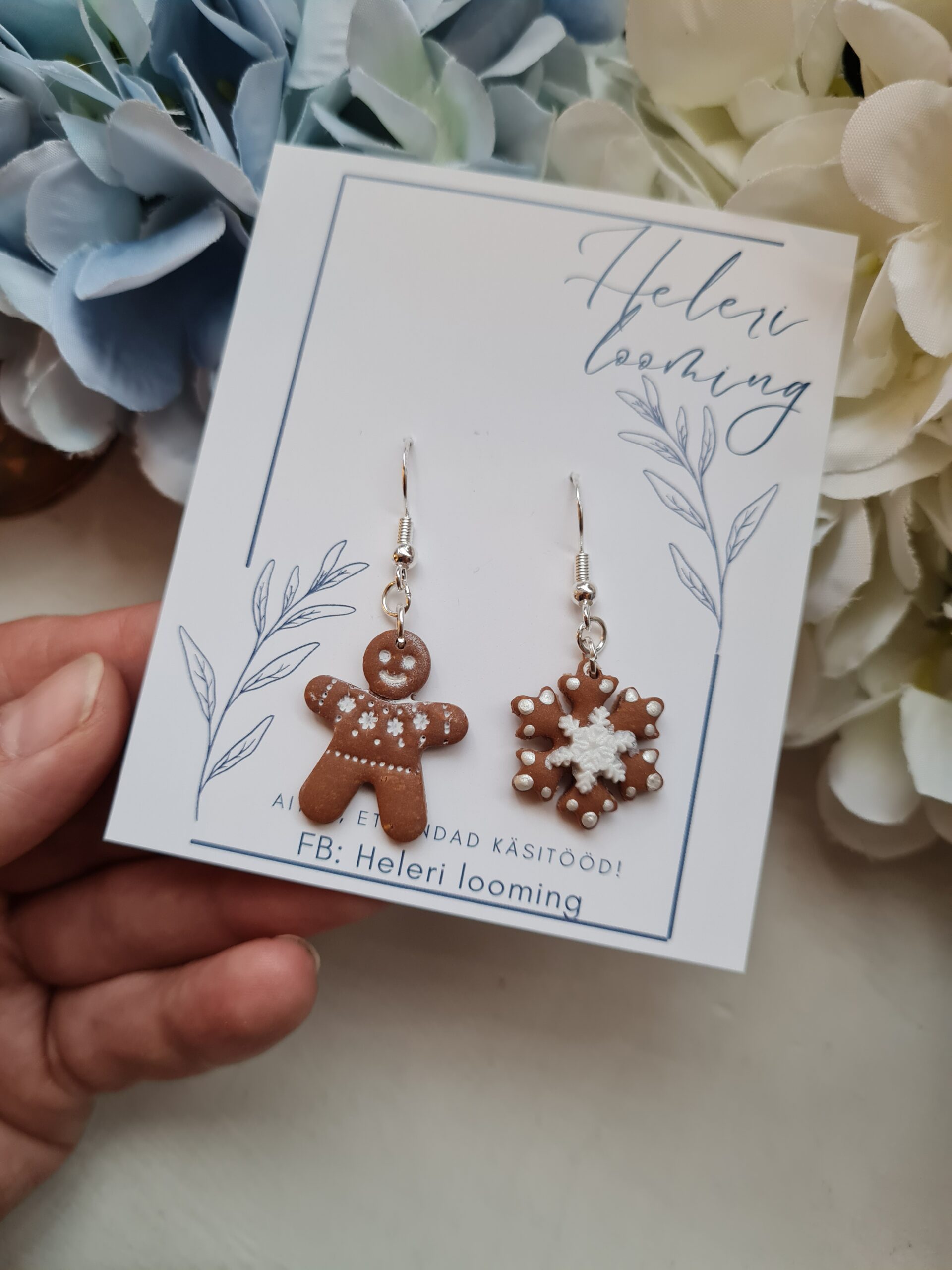 Käsitsi meisterdatud kõrvarõngad “Piparkoogimehikesed ja lumehelves”